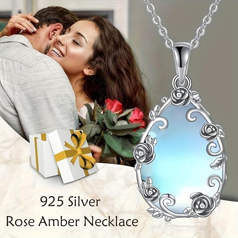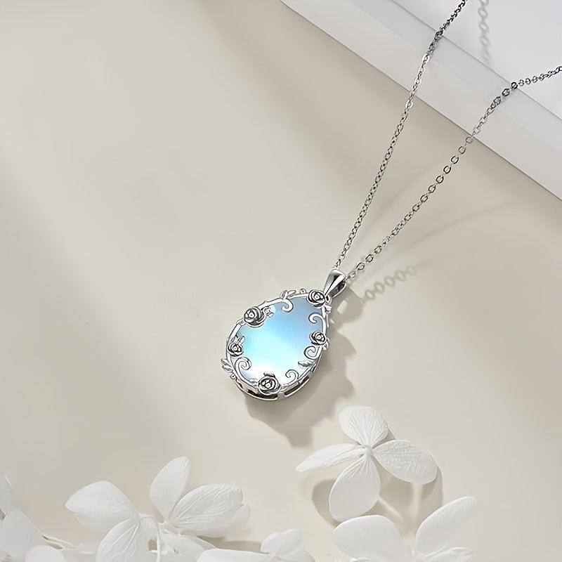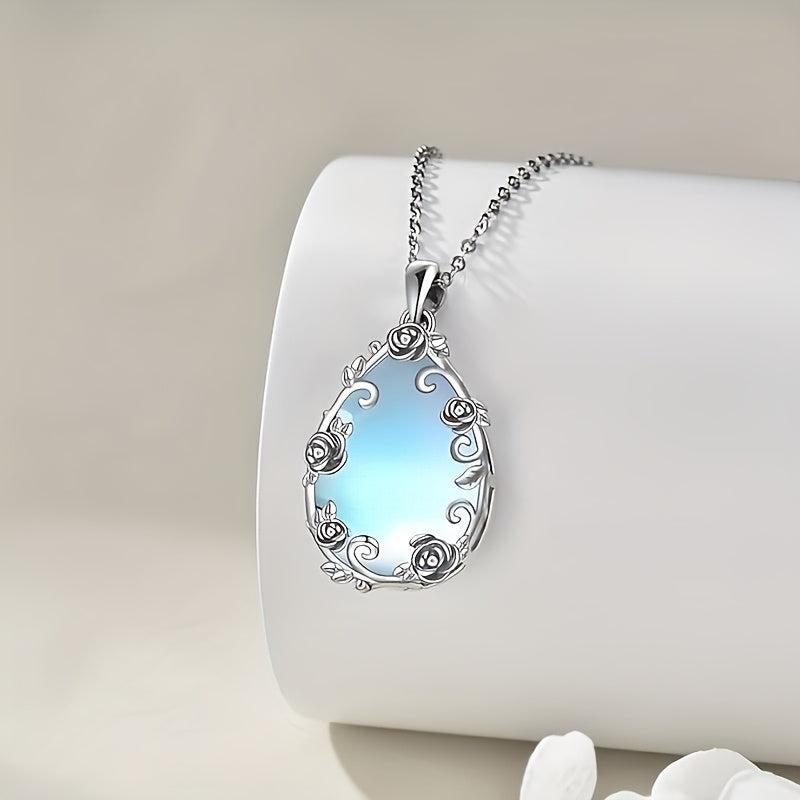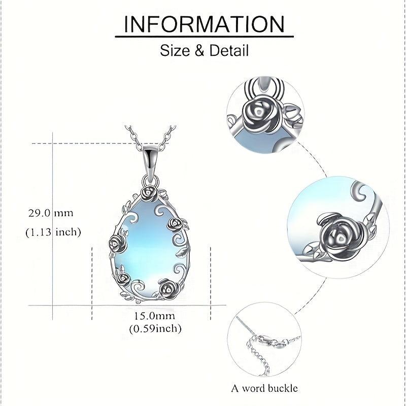 Moonstone Rose Flower Necklace 925 Sterling Silver Teardrop Pendant