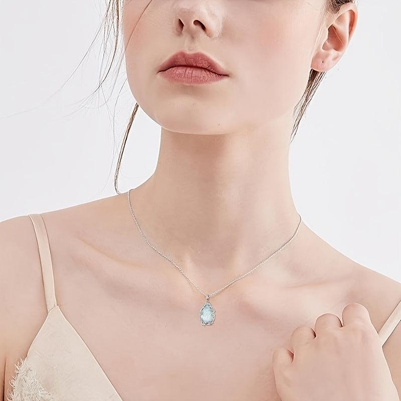 Beautiful moonstone necklace crafted from 925 sterling silver featuring a teardrop moonstone pendant. Perfect birthday gift for women, wife, girlfriend, mom, or any special lady in your life.