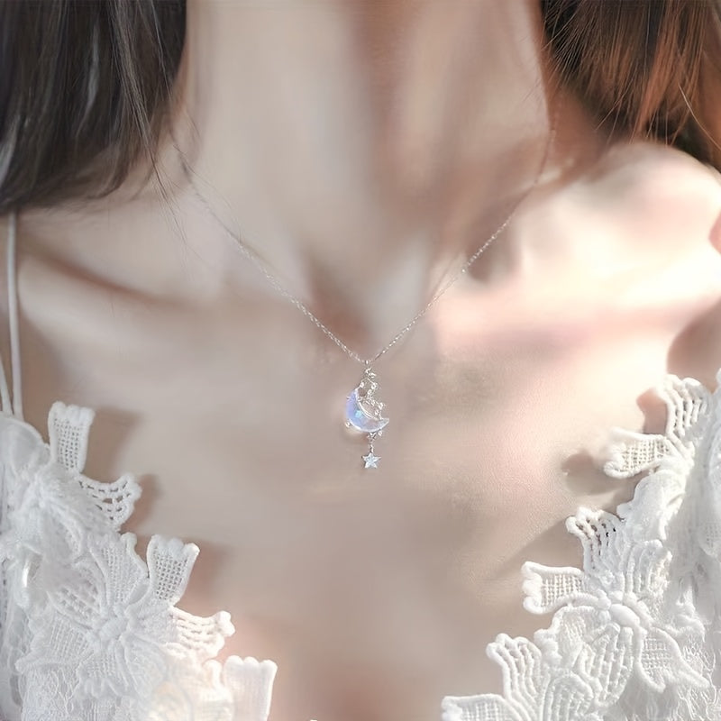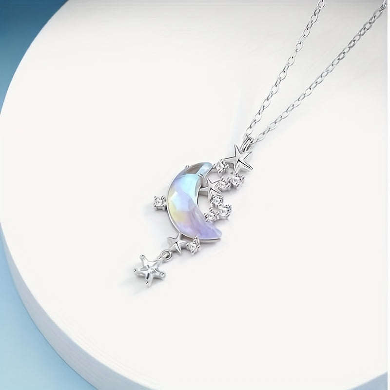 This beautiful necklace features a moonstone star pendant that sparkles like the night sky. Perfect for adding a touch of celestial charm to any outfit.