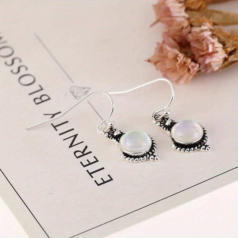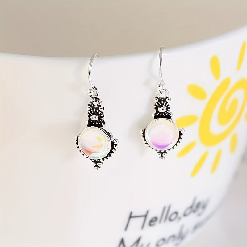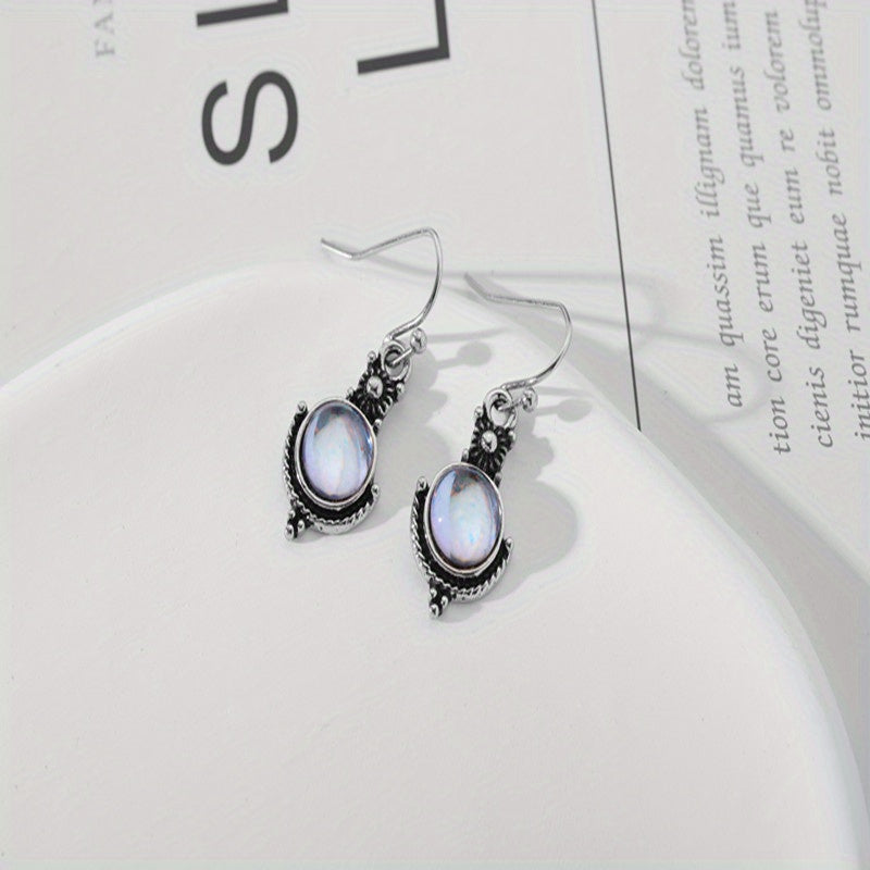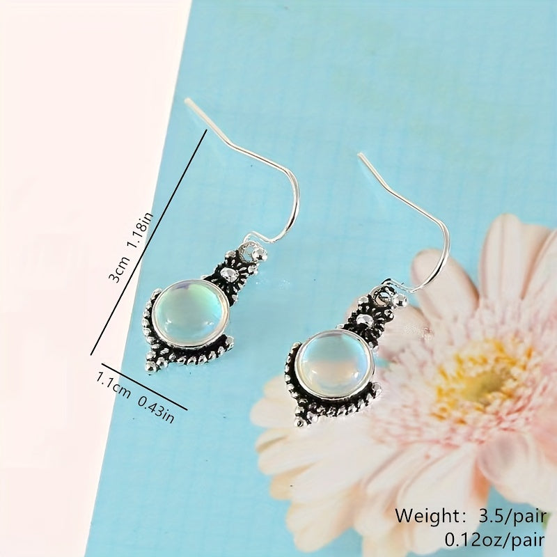Add a touch of vintage charm to your look with these elegant moonstone earrings. Each earring features seven rainbow gemstones and a unique ear hook design.