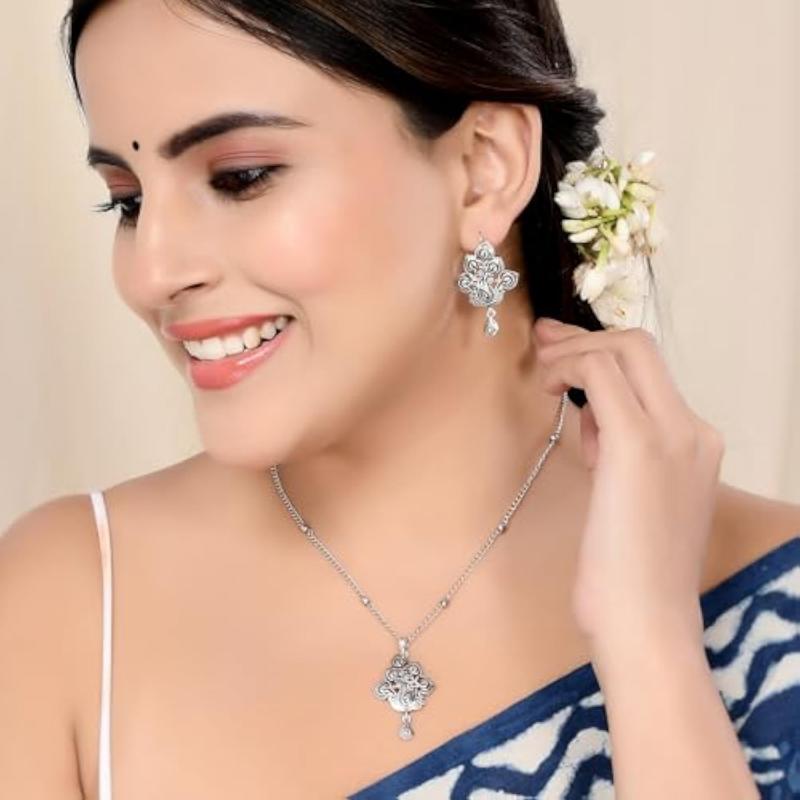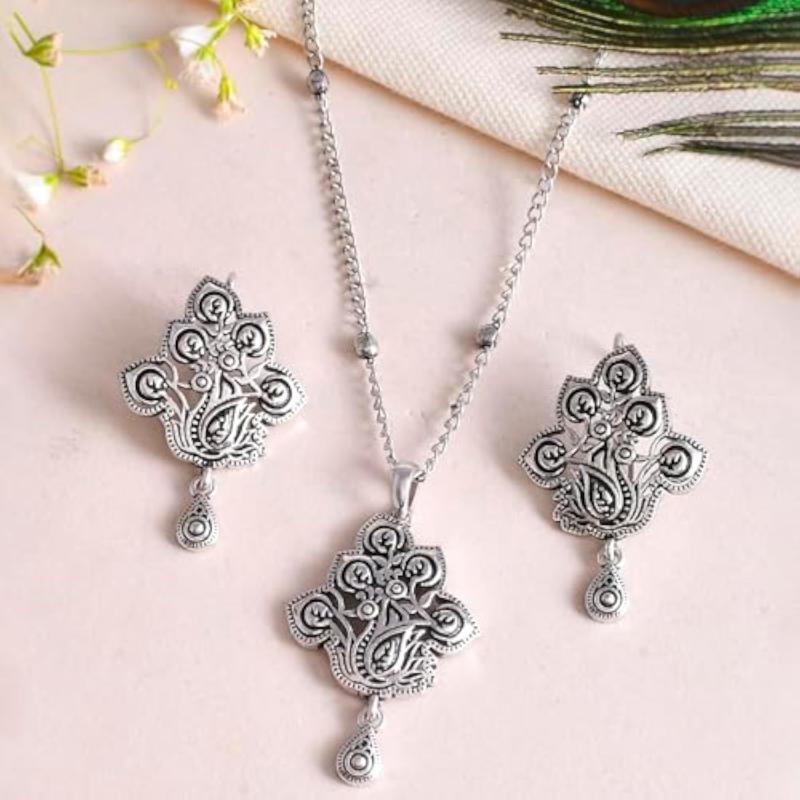 Elegant pendant set crafted for everyday wear, featuring intricate design with a touch of oxidised finish.