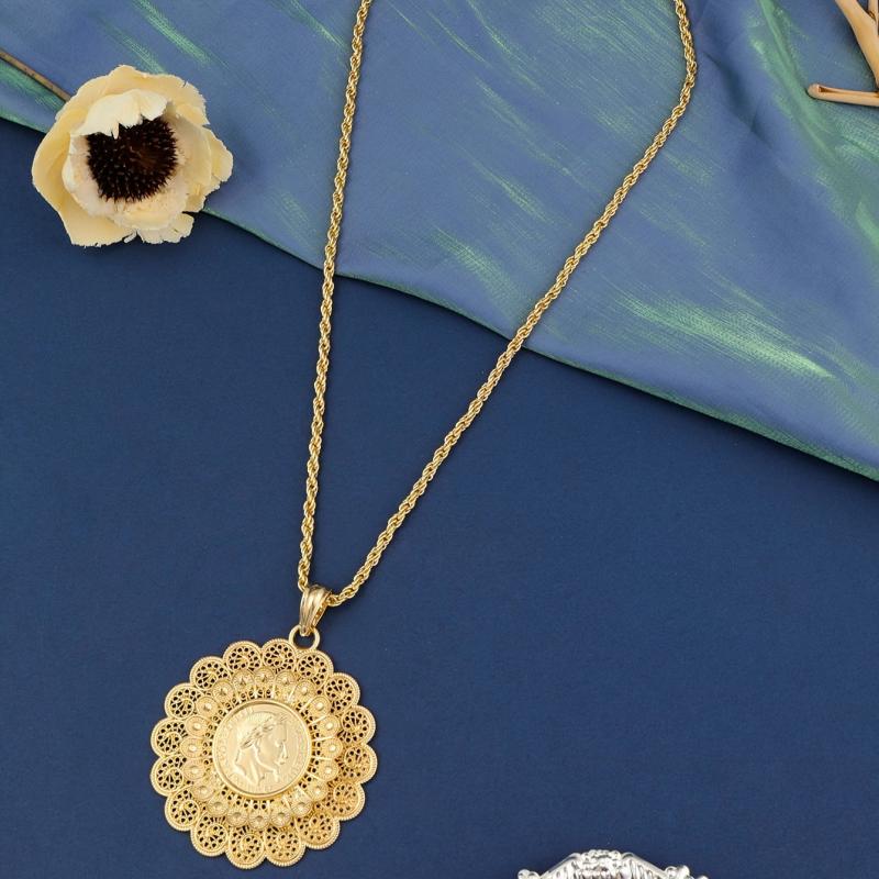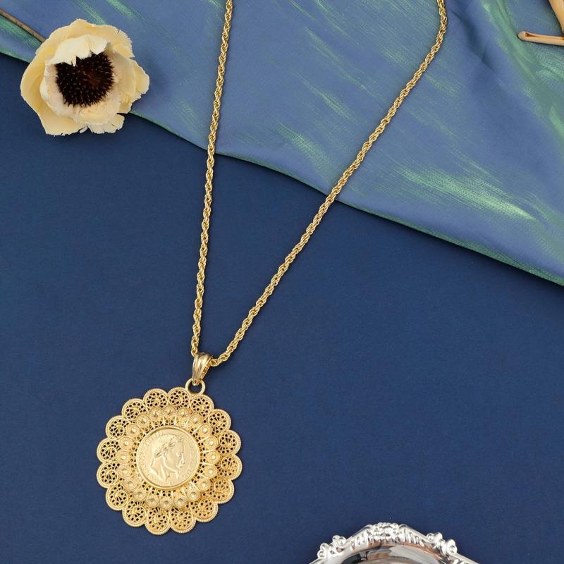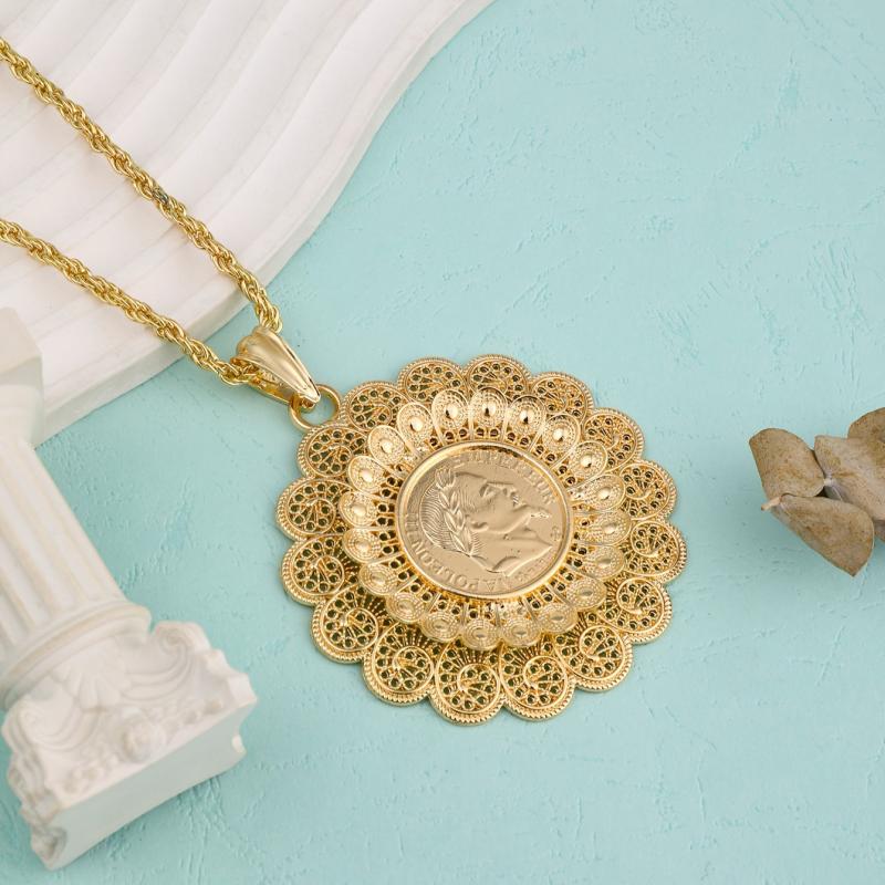 Elegant Moroccan-inspired necklace with hollow out flower design, perfect for women who appreciate cultural jewelry.