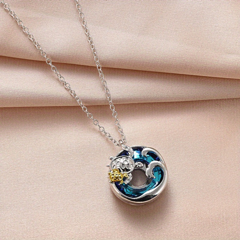 This pendant necklace features a round design with a mother and child turtle motif, making it a meaningful and stylish accessory for men.