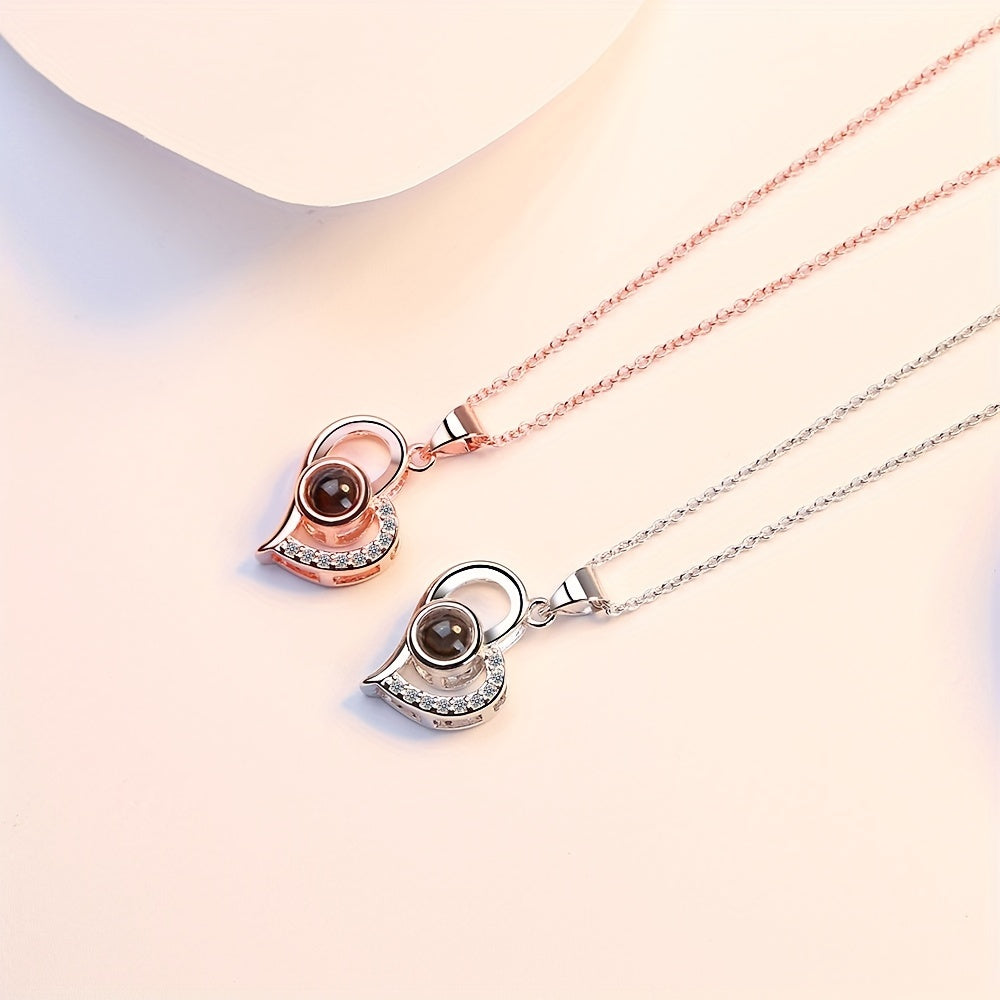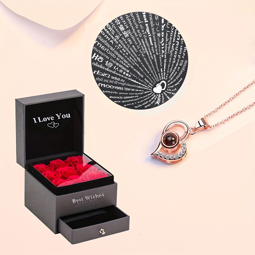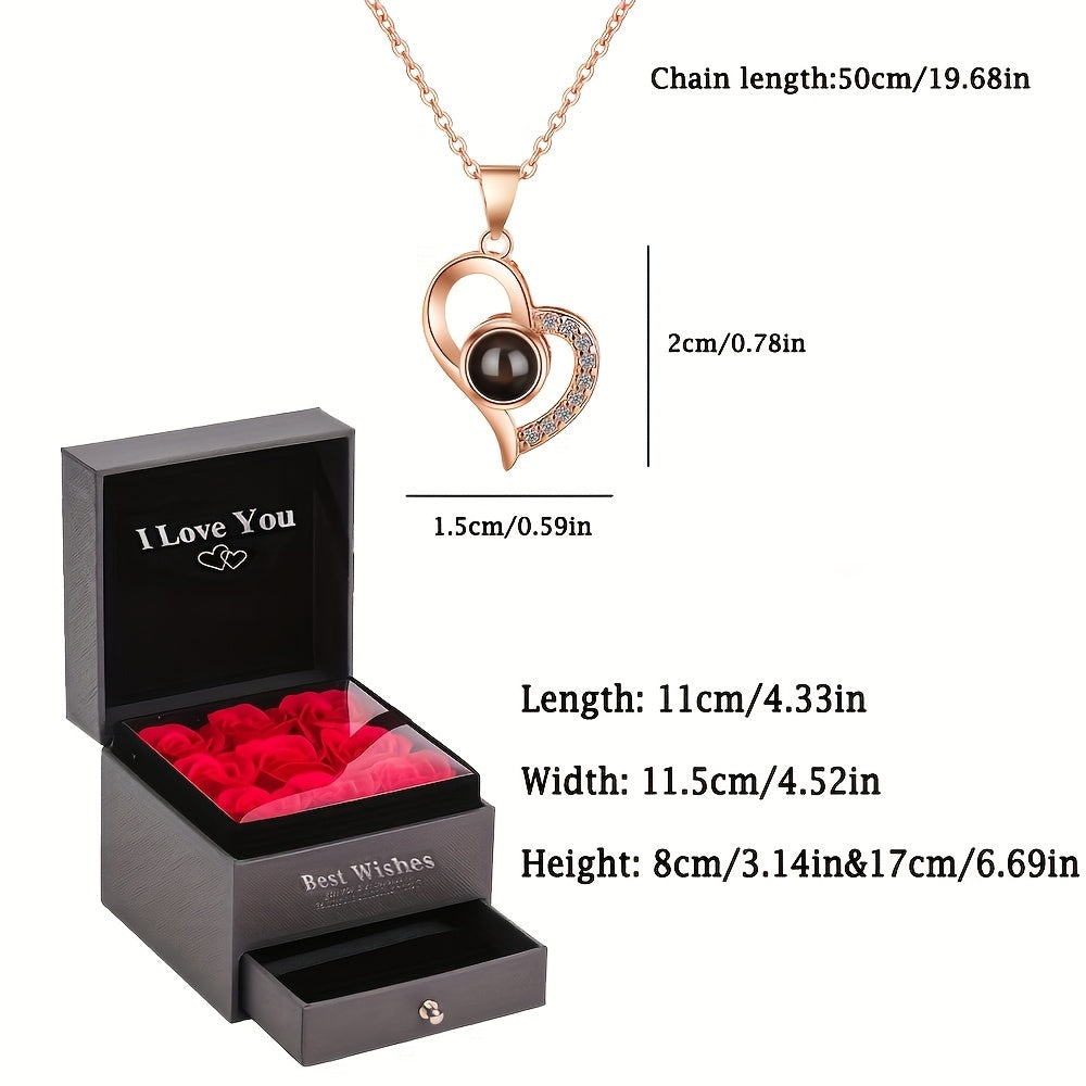 This romantic necklace features a rose flower design and can project 'I Love You' in 100 languages. A perfect gift for mothers or loved ones.