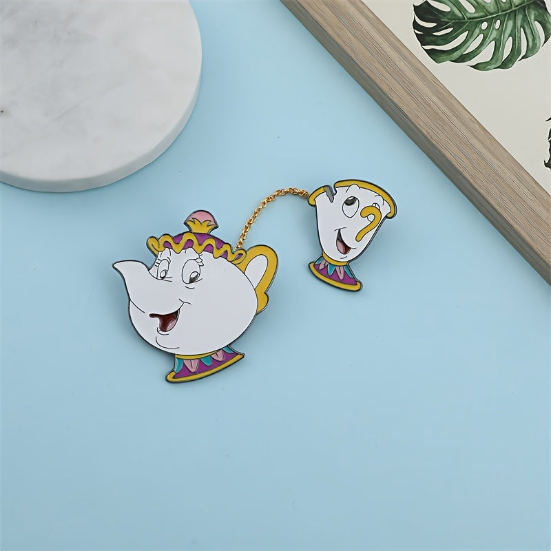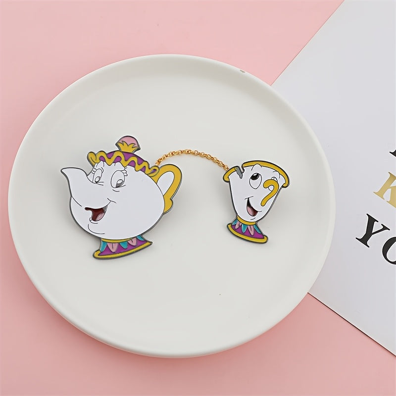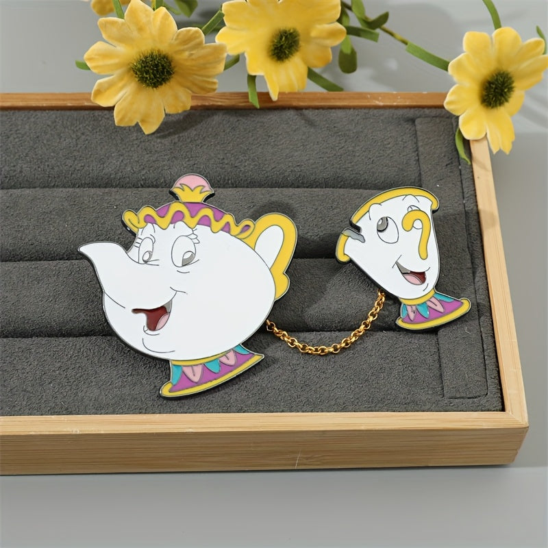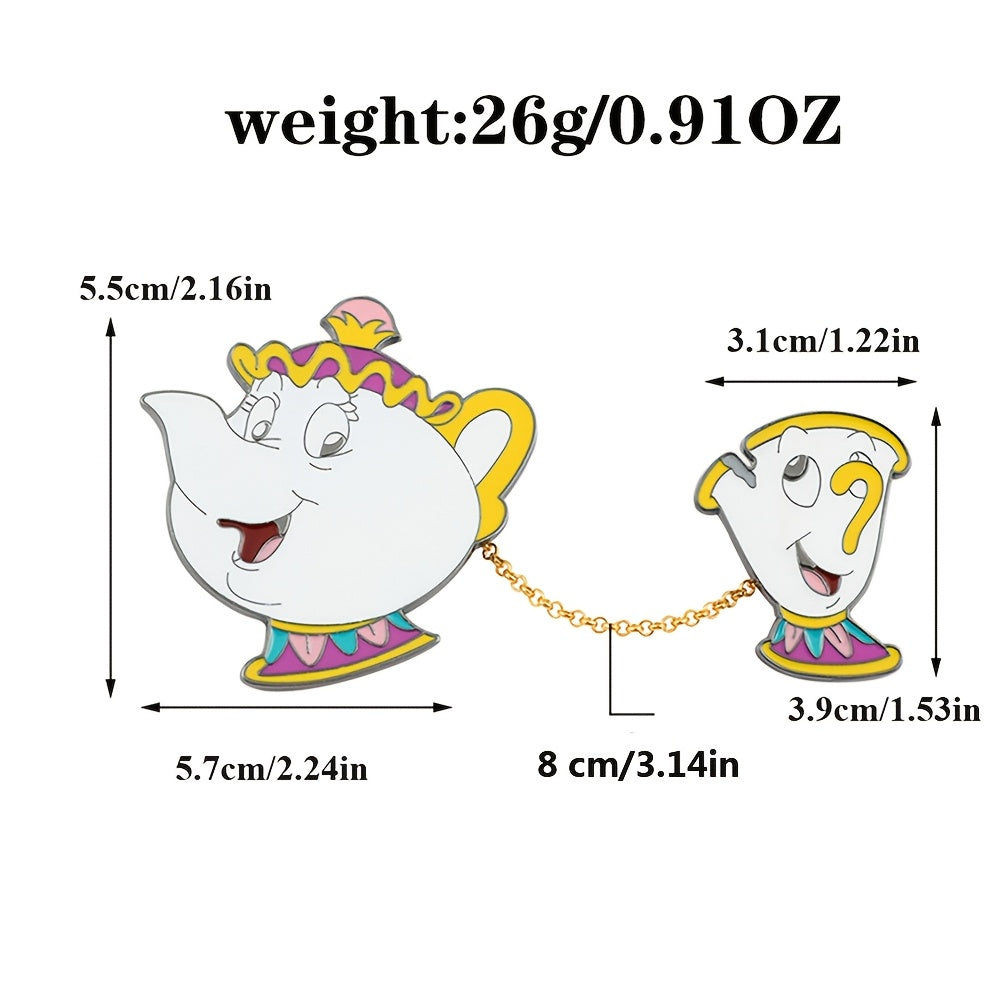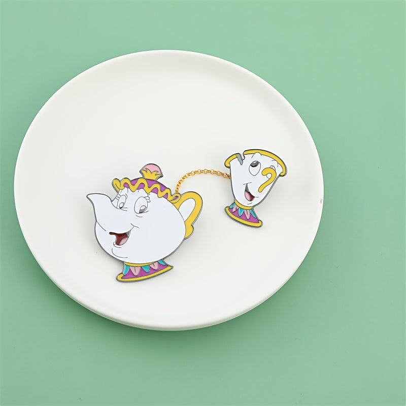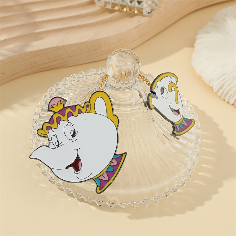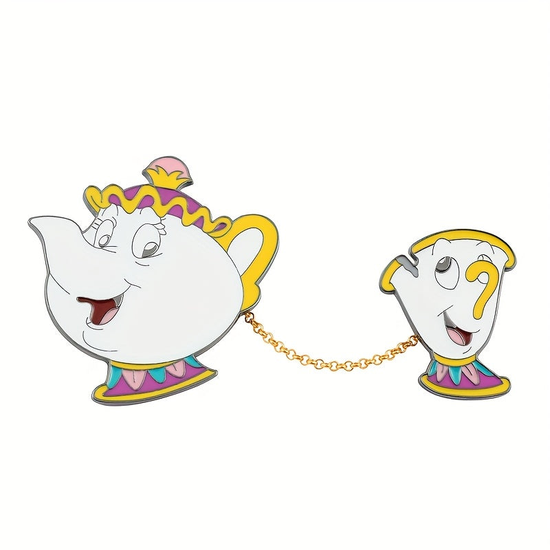 Add a touch of whimsy with this Mrs Potts brooch, featuring an enamel design in an irregular shape. Perfect for fans of anime and cartoons.