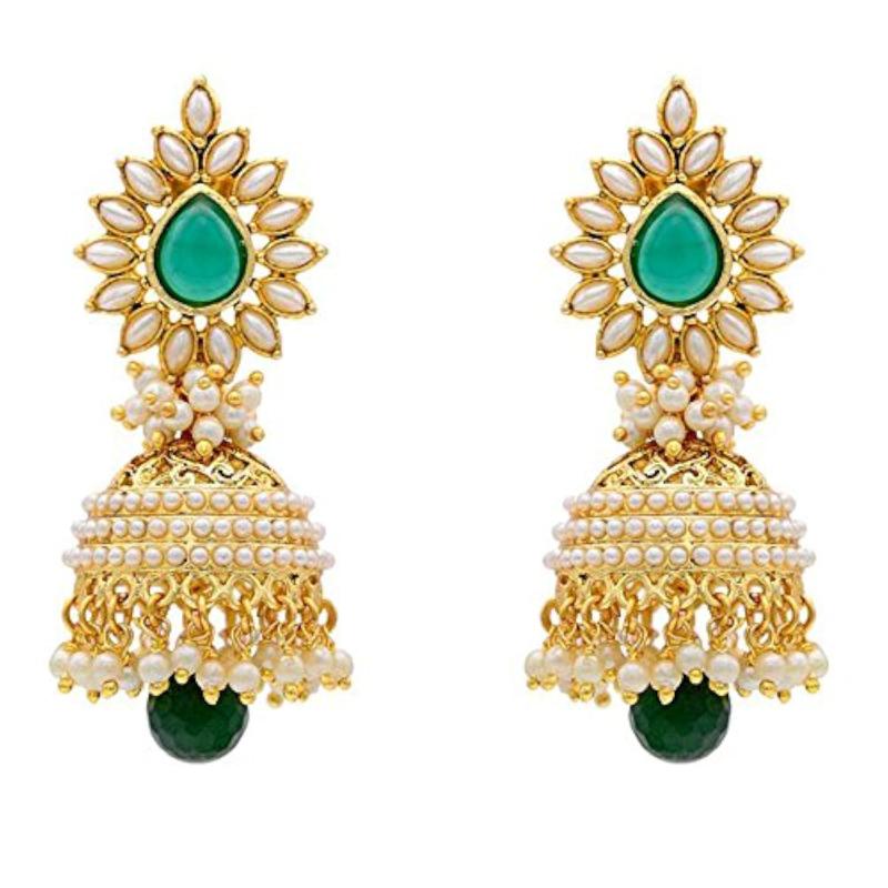 These stunning brass jhumki earrings are the perfect accessory for traditional and ethnic fashion looks. Handcrafted with intricate details, they add a touch of elegance to any outfit.