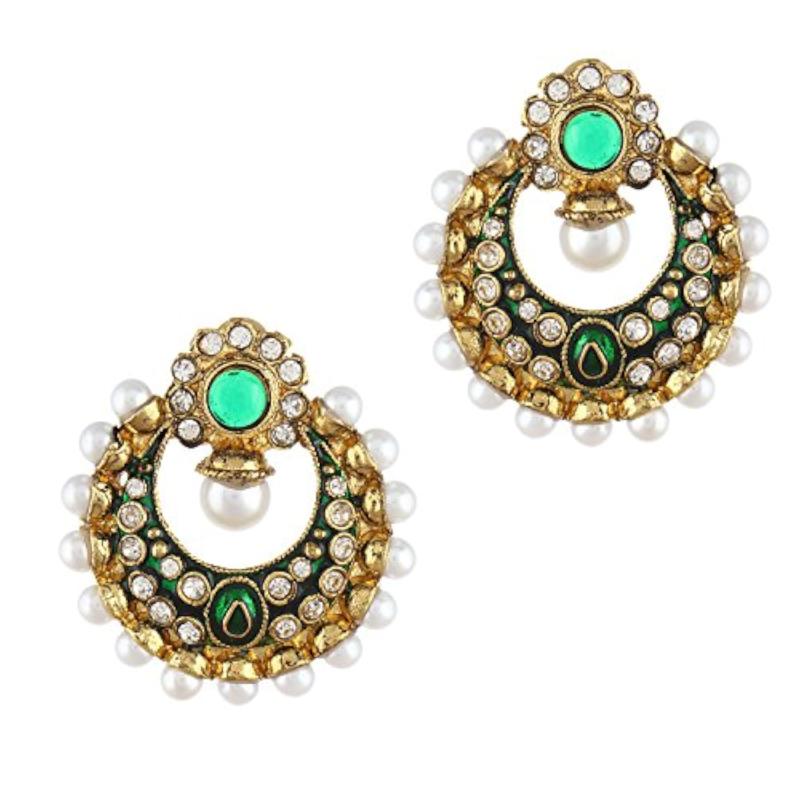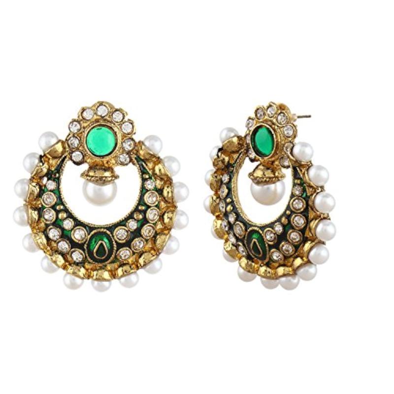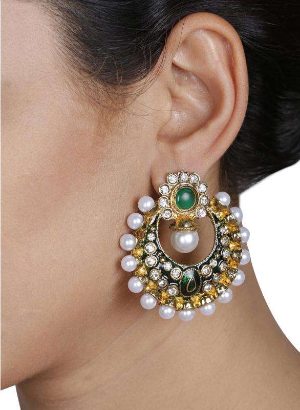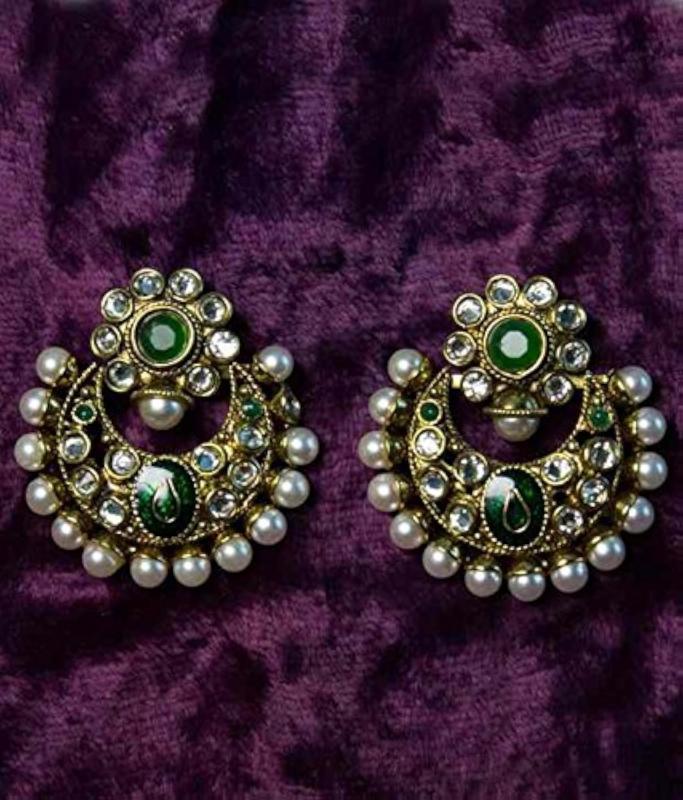 Exquisite Mughal Chandbali style earrings with traditional Meenakari work. A perfect accessory for girls and women.