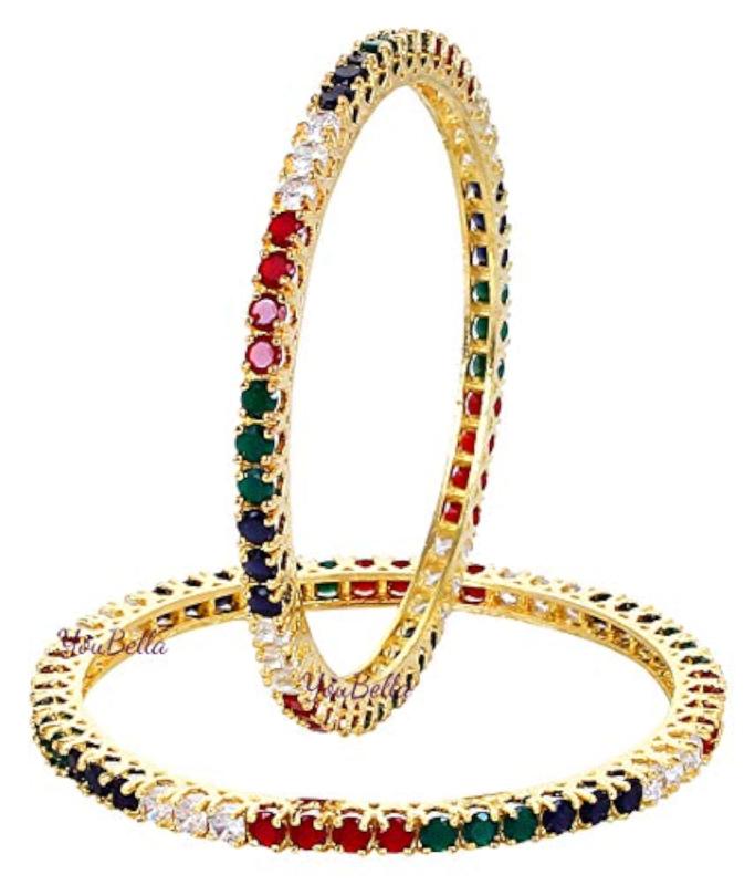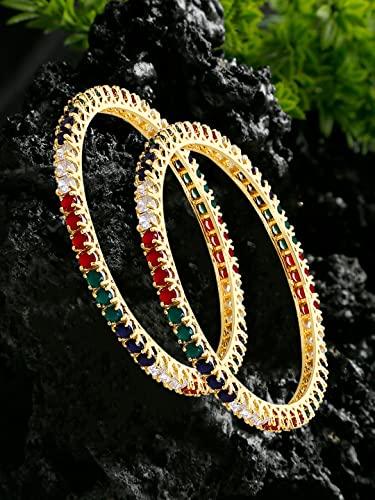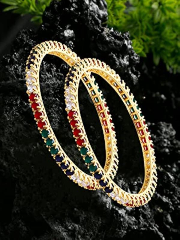 Enhance your look with these stunning multicolor American diamond bangles. Perfect for any occasion.