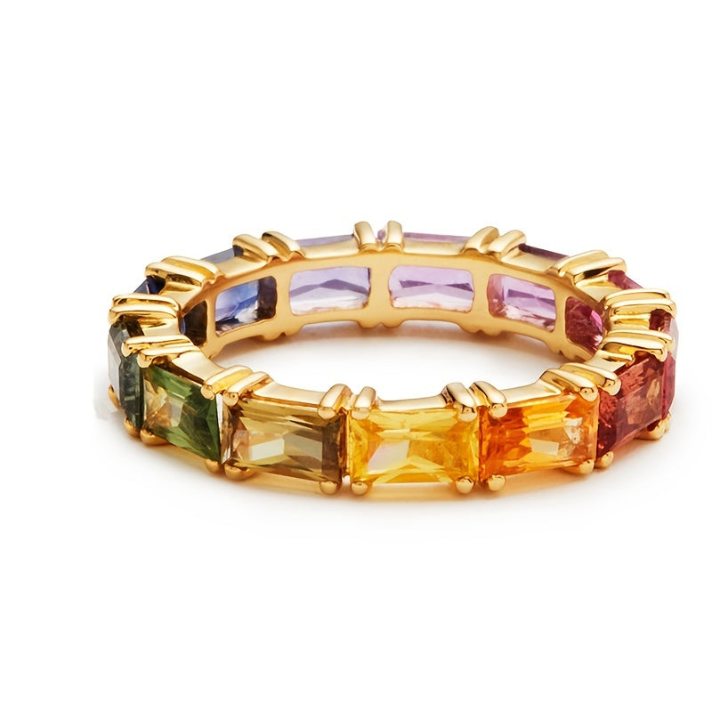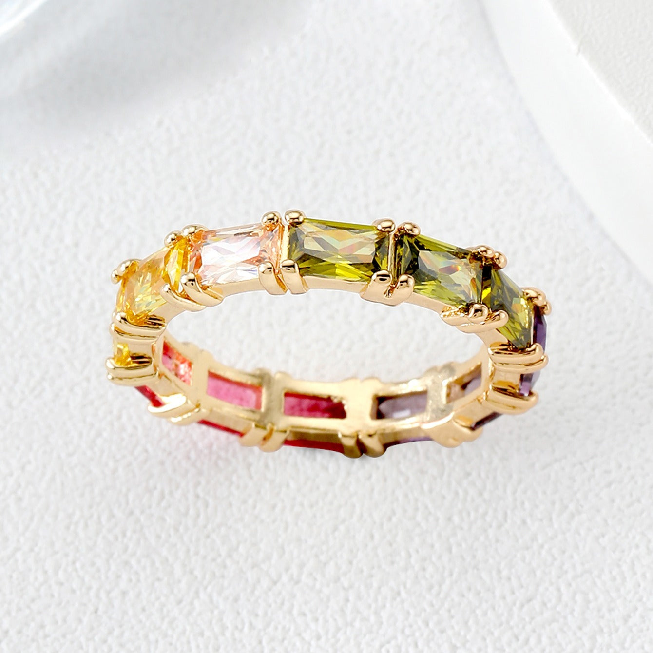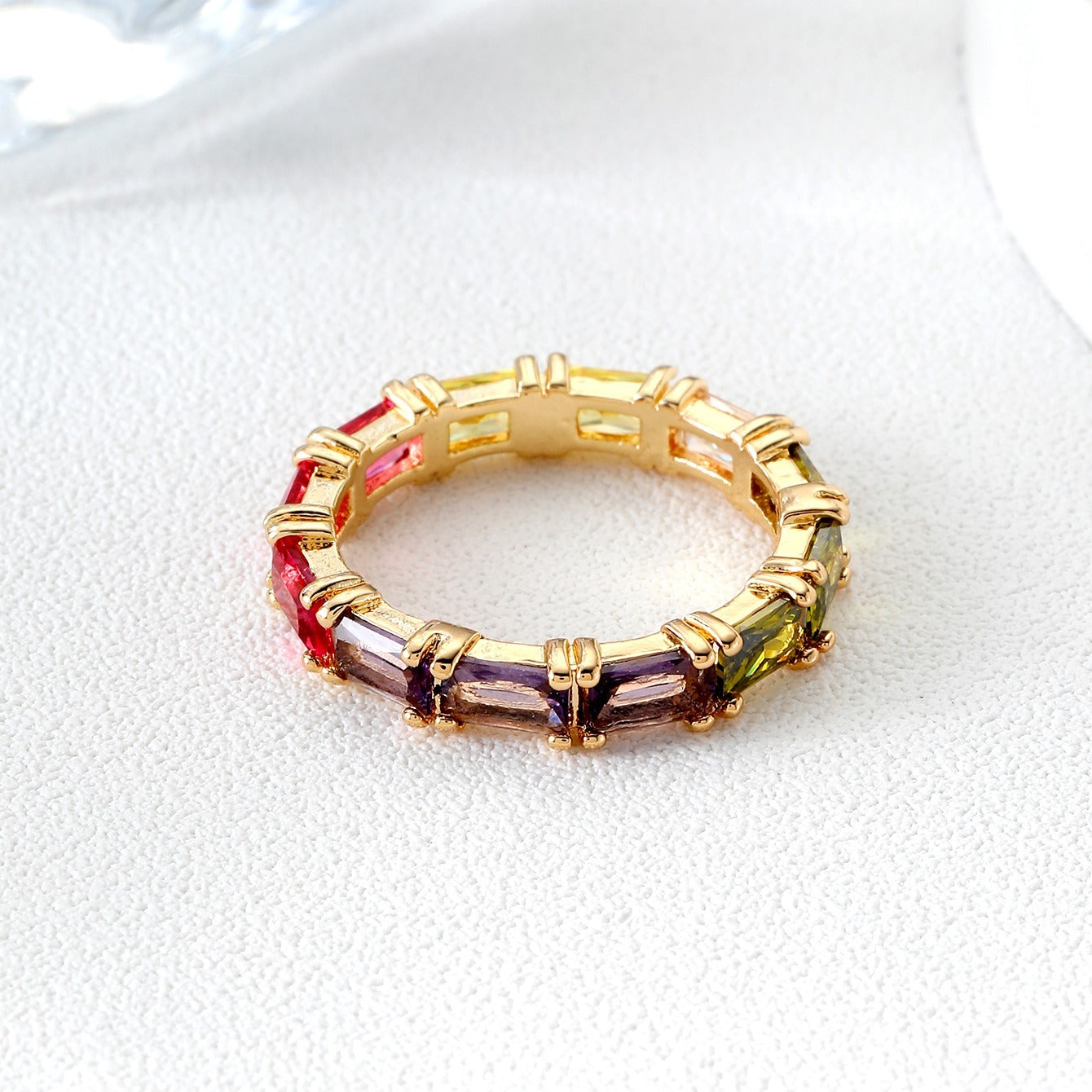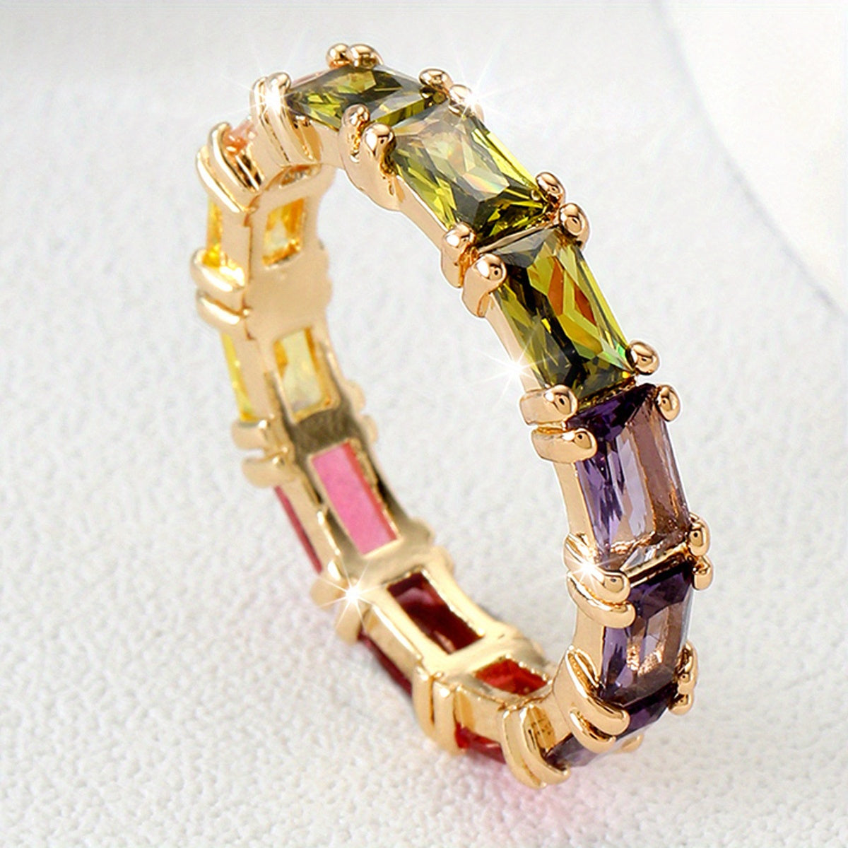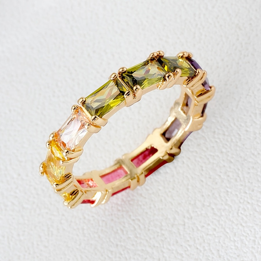 Add a pop of color to your look with this stunning multicolor cubic zirconia ring. The circle design and golden plating make it a stylish accessory for any outfit.