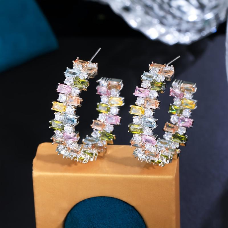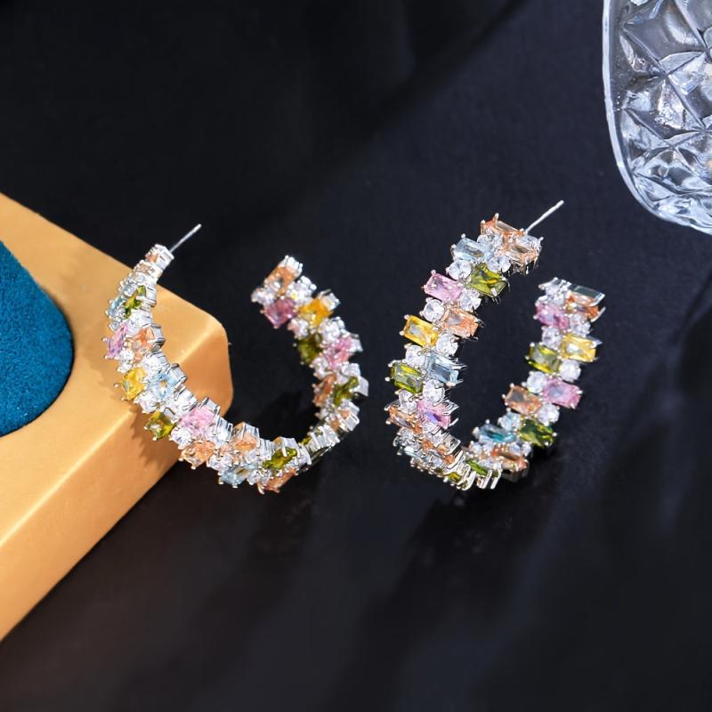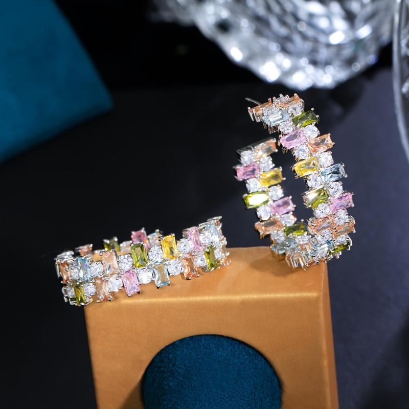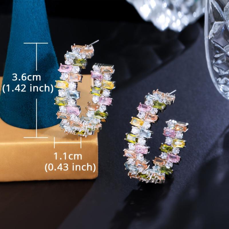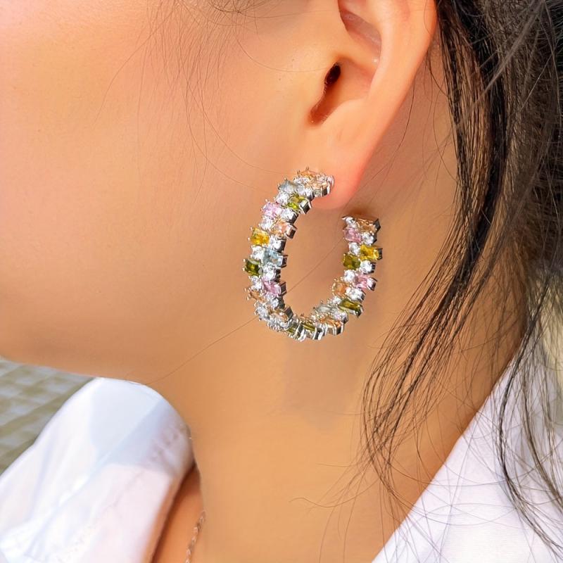 Make a statement with these glamorous hoop earrings featuring a dazzling array of multicolor zirconia. Perfect for big banquets, parties, weddings, and Valentine's Day celebrations.