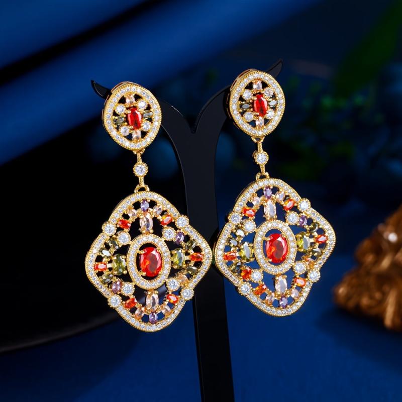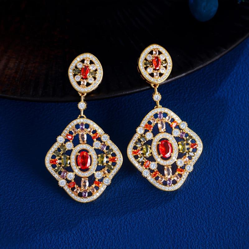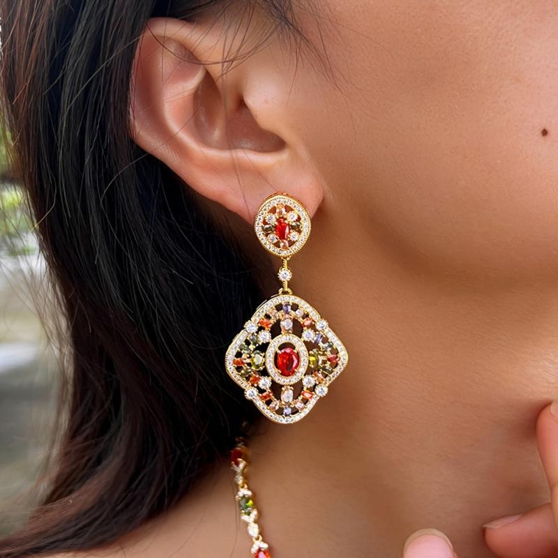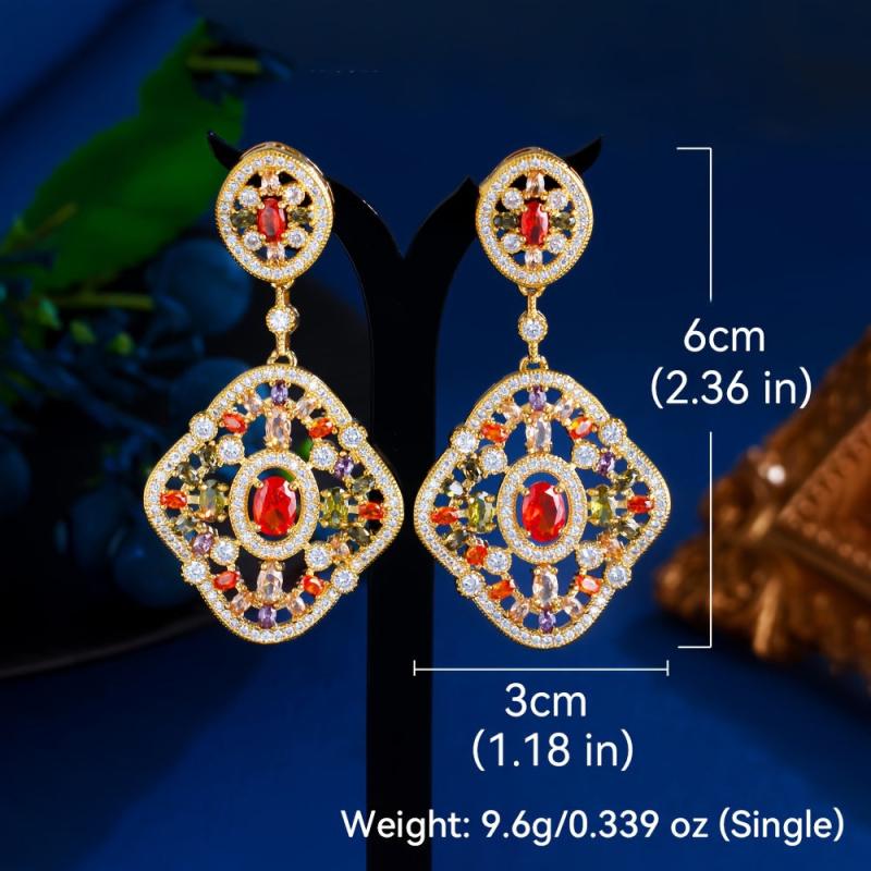 Add a touch of elegance to your look with these long dangle earrings featuring synthetic zirconia in a variety of colors. Perfect for weddings, parties, and everyday wear.