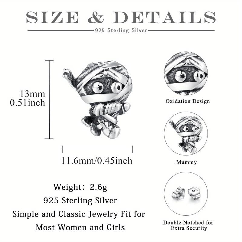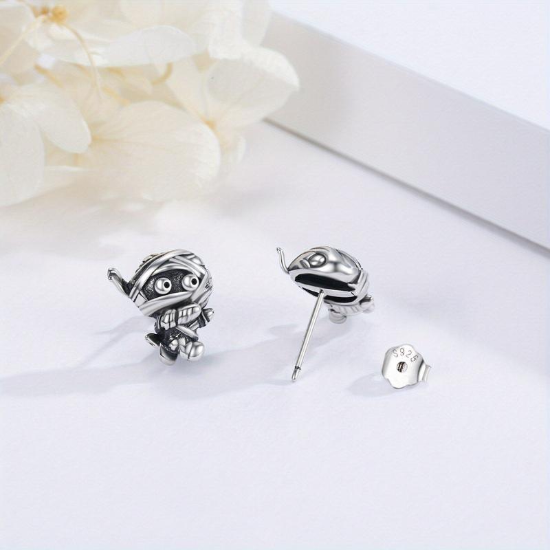 Add a touch of vintage goth to your outfit with these mummy stud earrings. Made from 925 sterling silver, these bandage mummy earrings are perfect for any punk or skull lover.