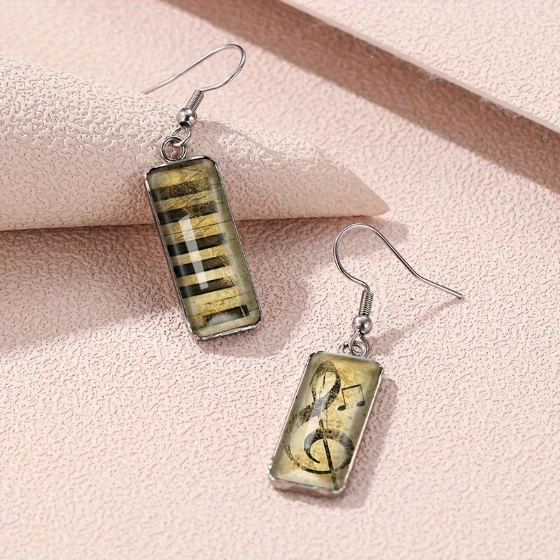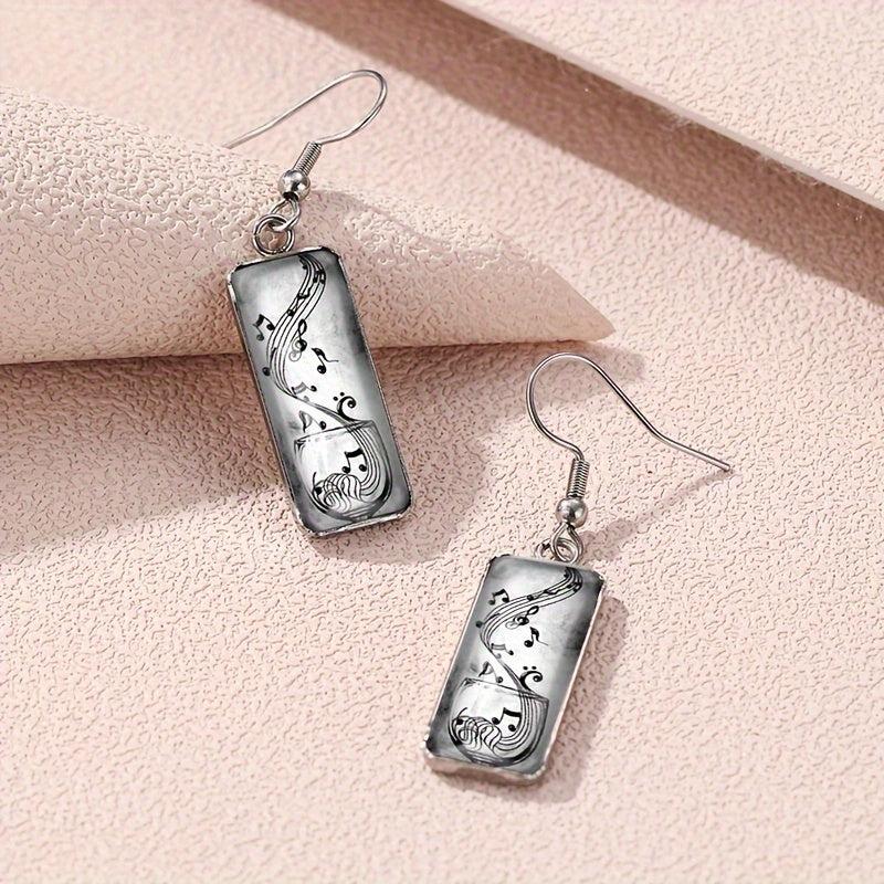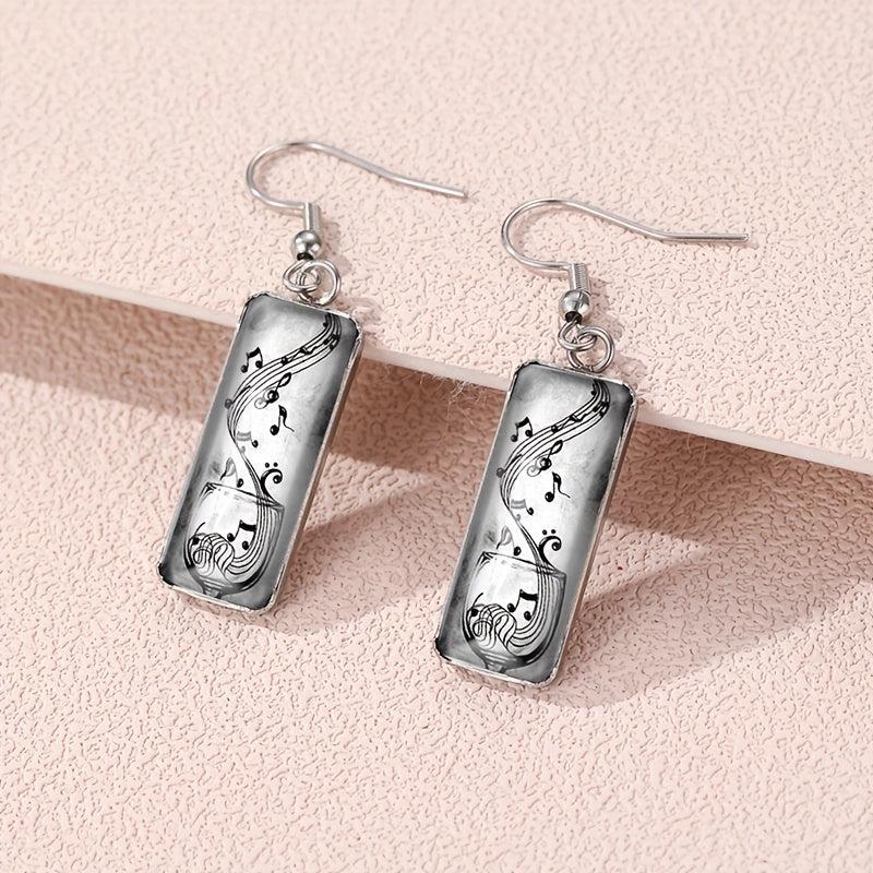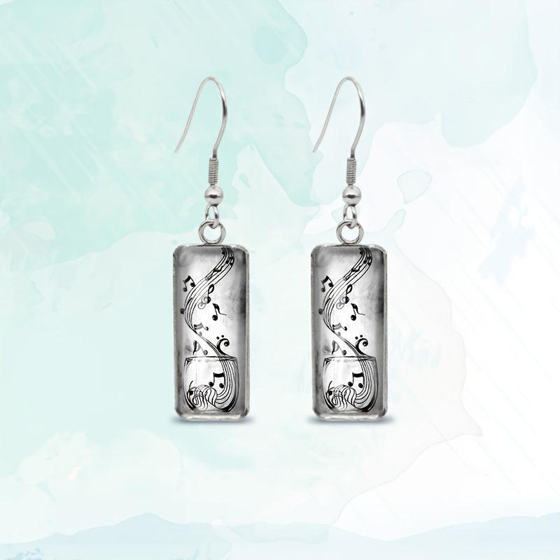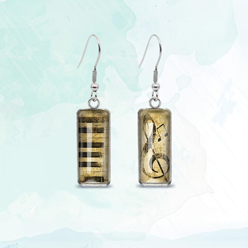 These retro music note dangle earrings feature glass rectangular design, perfect for music lovers.