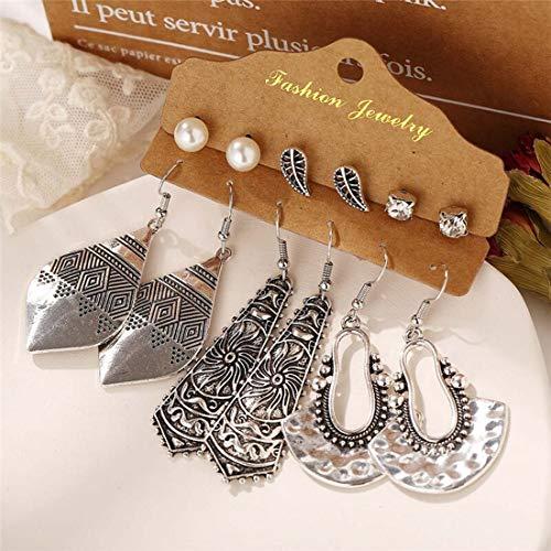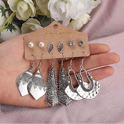 Elegant set of 6 pairs of earrings featuring mysterious pearls and AD oxidised German silver plating.