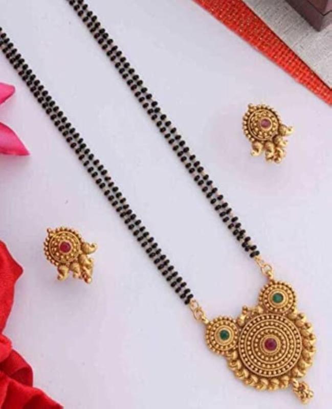 This elegant Nakshatra plated mangalsutra is perfect for a 24-inch long mangalsutra. It features a beautiful design that symbolizes love and commitment.