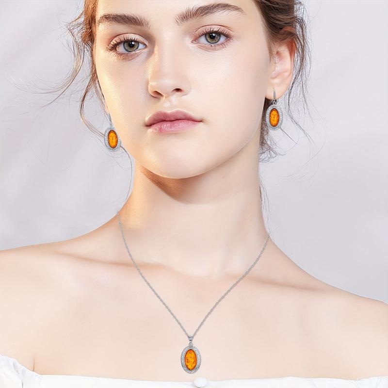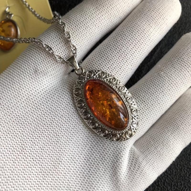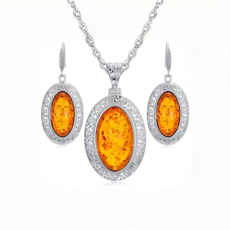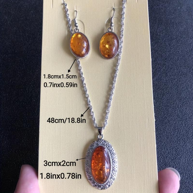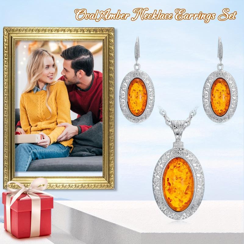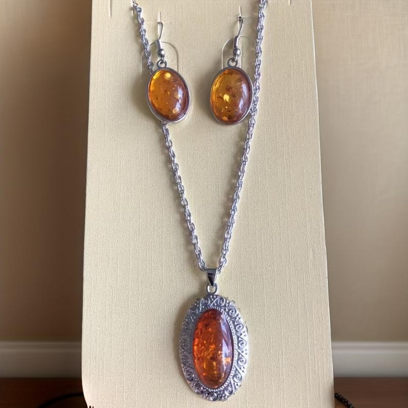 This two-piece set features a stunning natural amber necklace and matching earrings, making it the perfect bohemian jewelry ensemble for women.