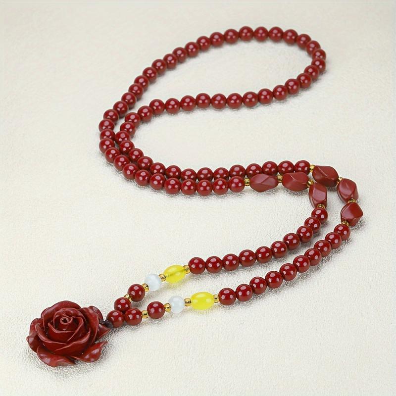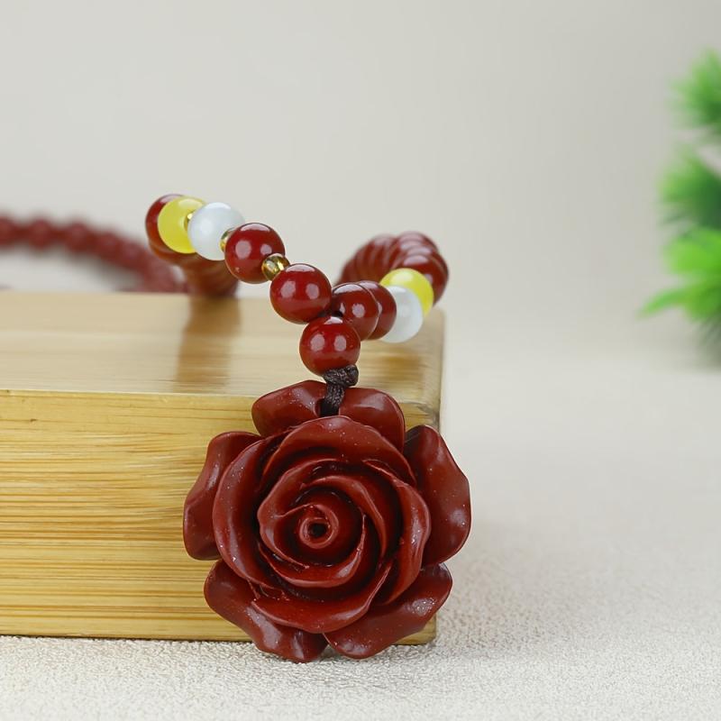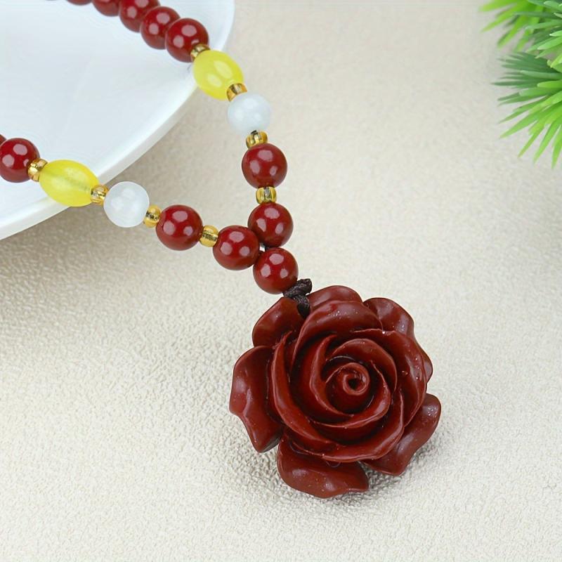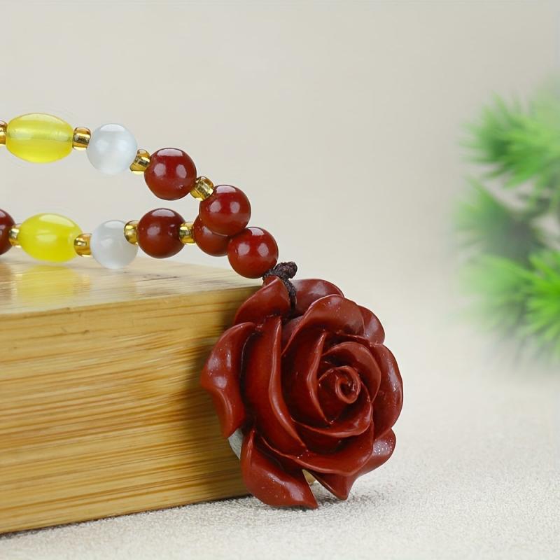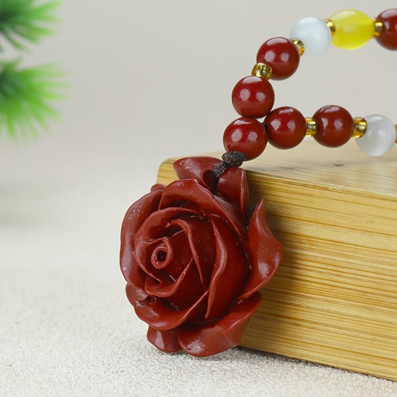 This sweet female pendant features a natural ore cinnabar rose design with high content purple golden sand. It is a stylish and unique accessory that adds elegance to any outfit.