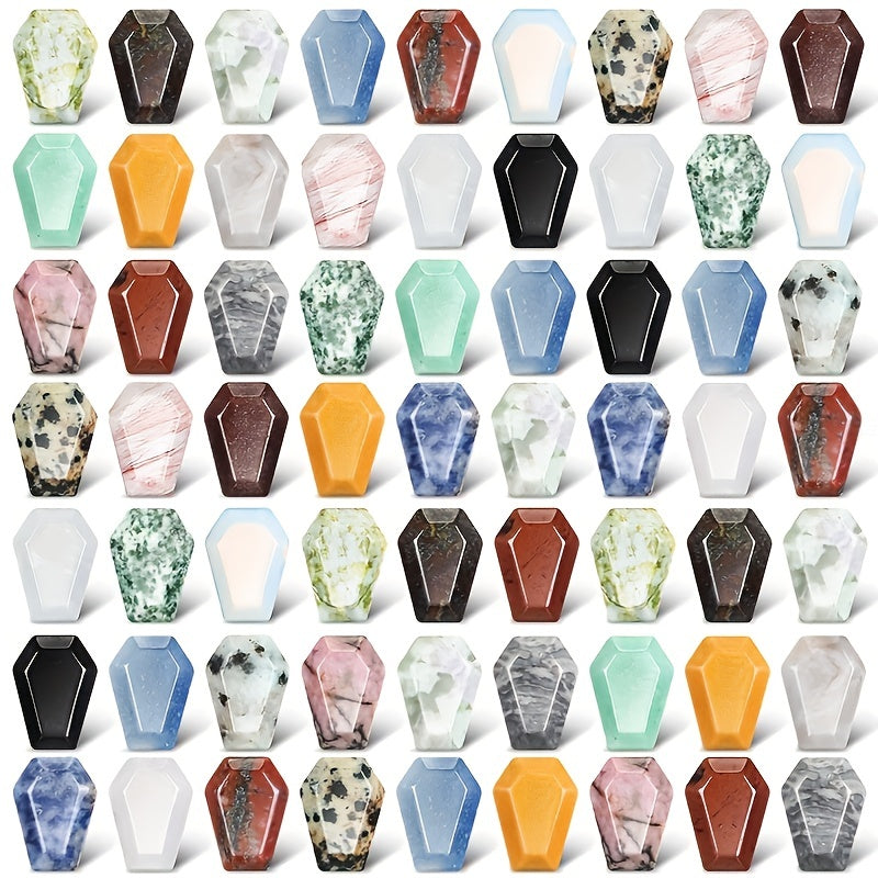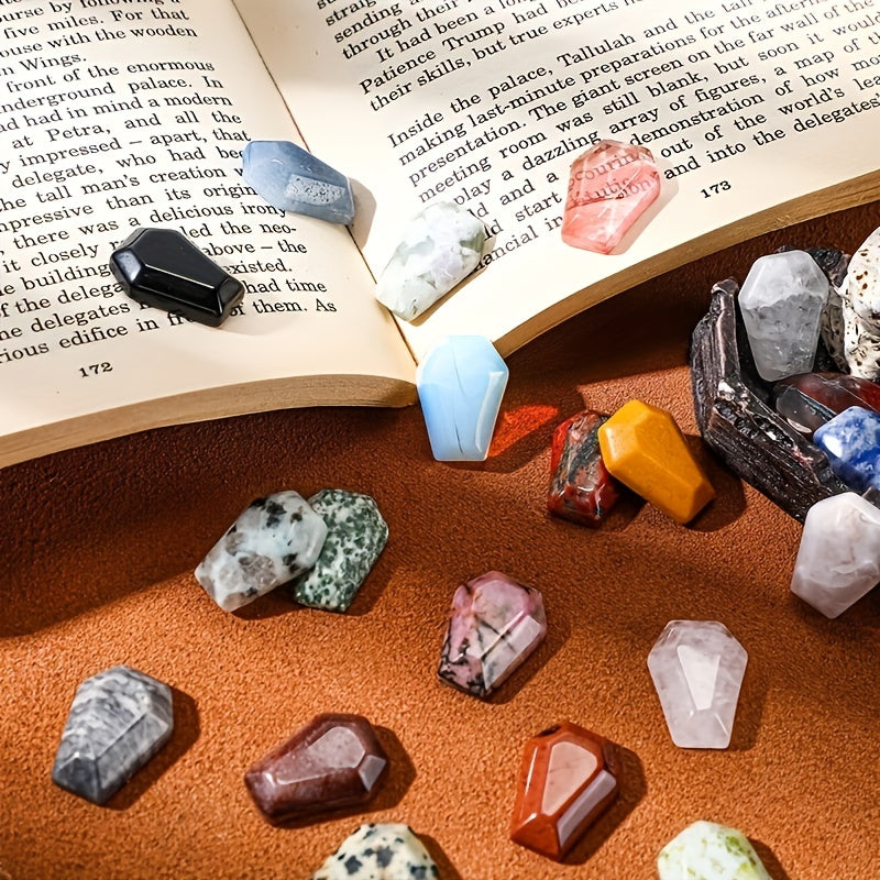 Add a touch of spooky elegance to your decor with these mini coffin plates made of natural crystal agate. Perfect for Halloween or any gothic theme.