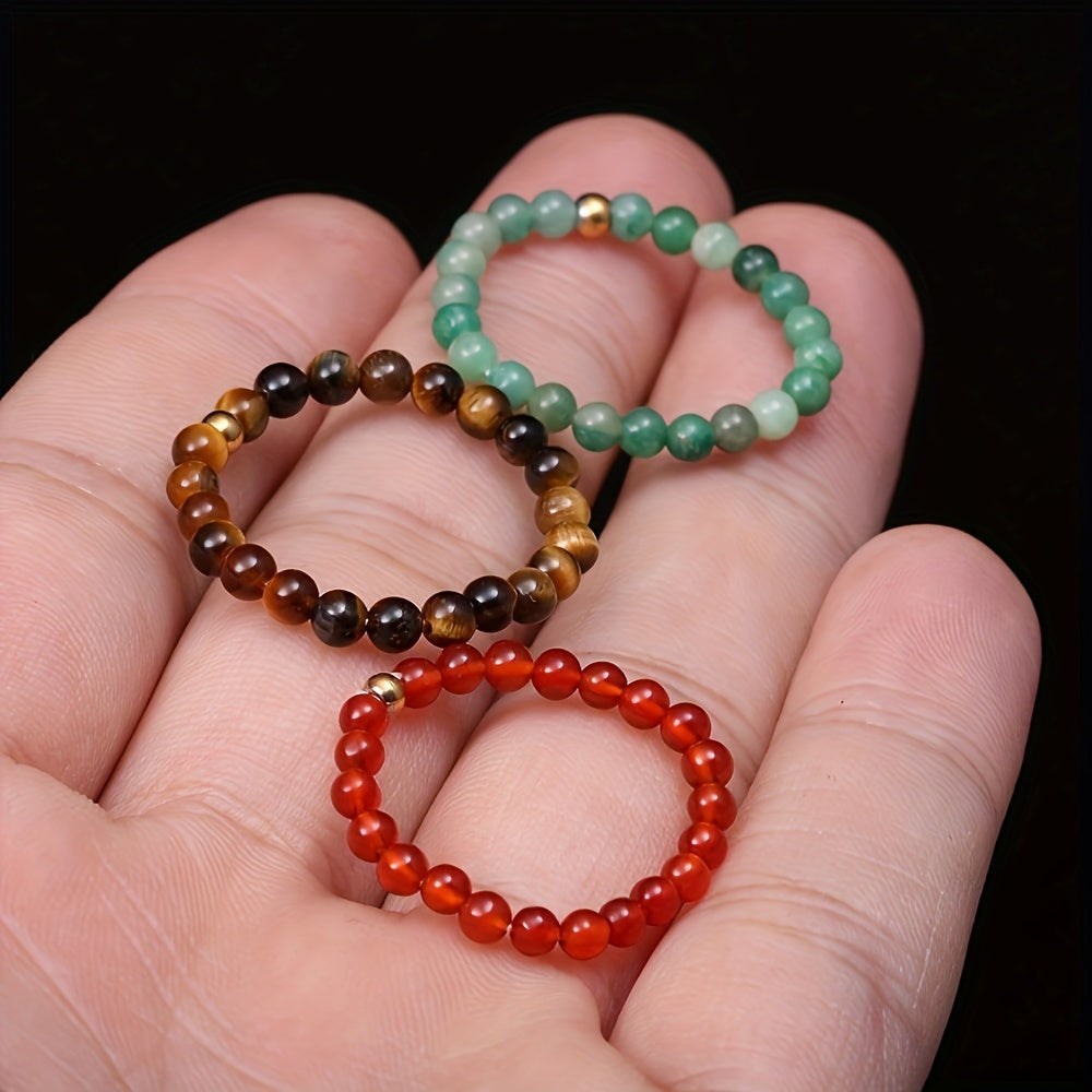 This adjustable wedding ring is made of 3mm round beads of natural crystal energy stone, perfect for adding a touch of elegance to any outfit.