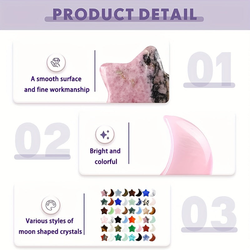 Enhance your fish tank or yoga practice with this pack of natural crystal moon and star shape stones. These stones are perfect for decoration and energy enhancement.