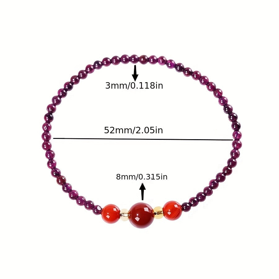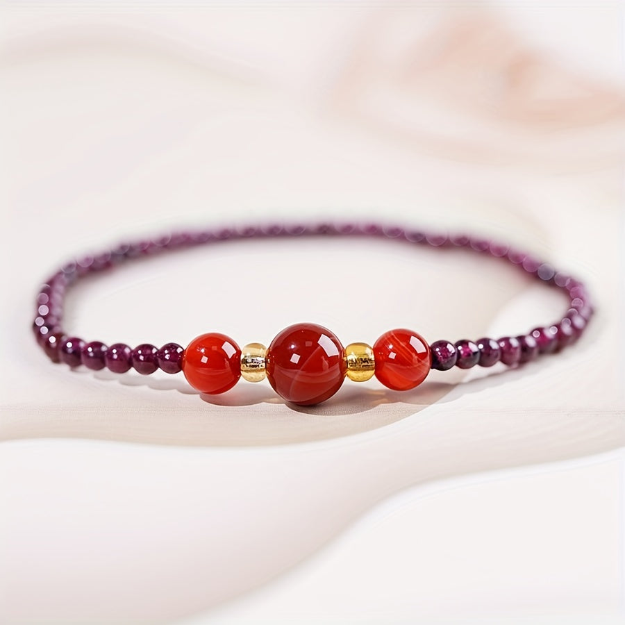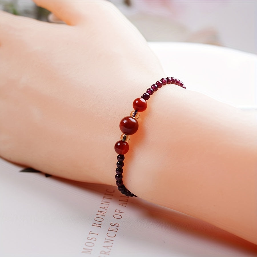 Add a touch of elegance to your beach party outfit with this natural garnet waterproof bracelet.