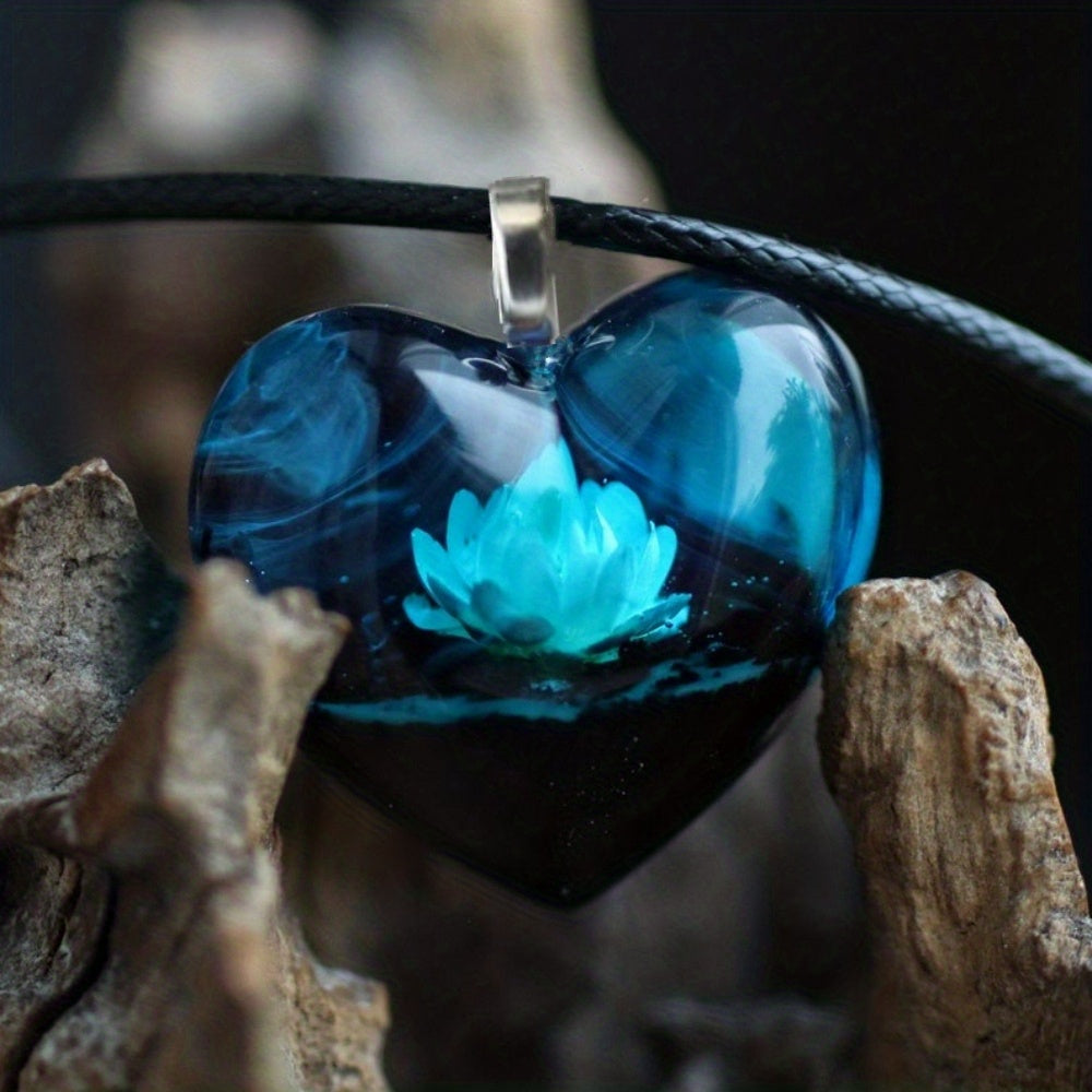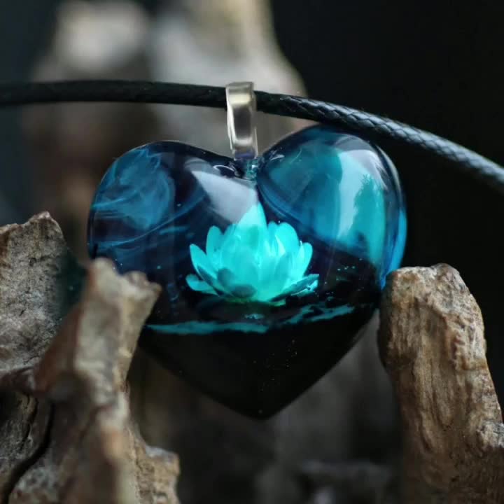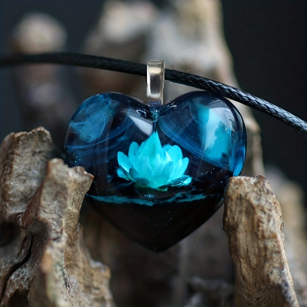 This unique pendant features a stunning lotus and grass wood design in a love heart shape. A perfect accessory for nature lovers.