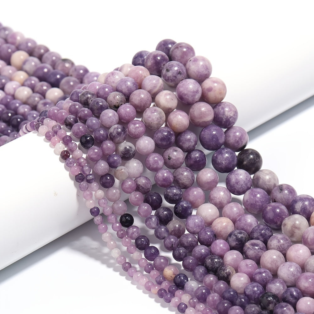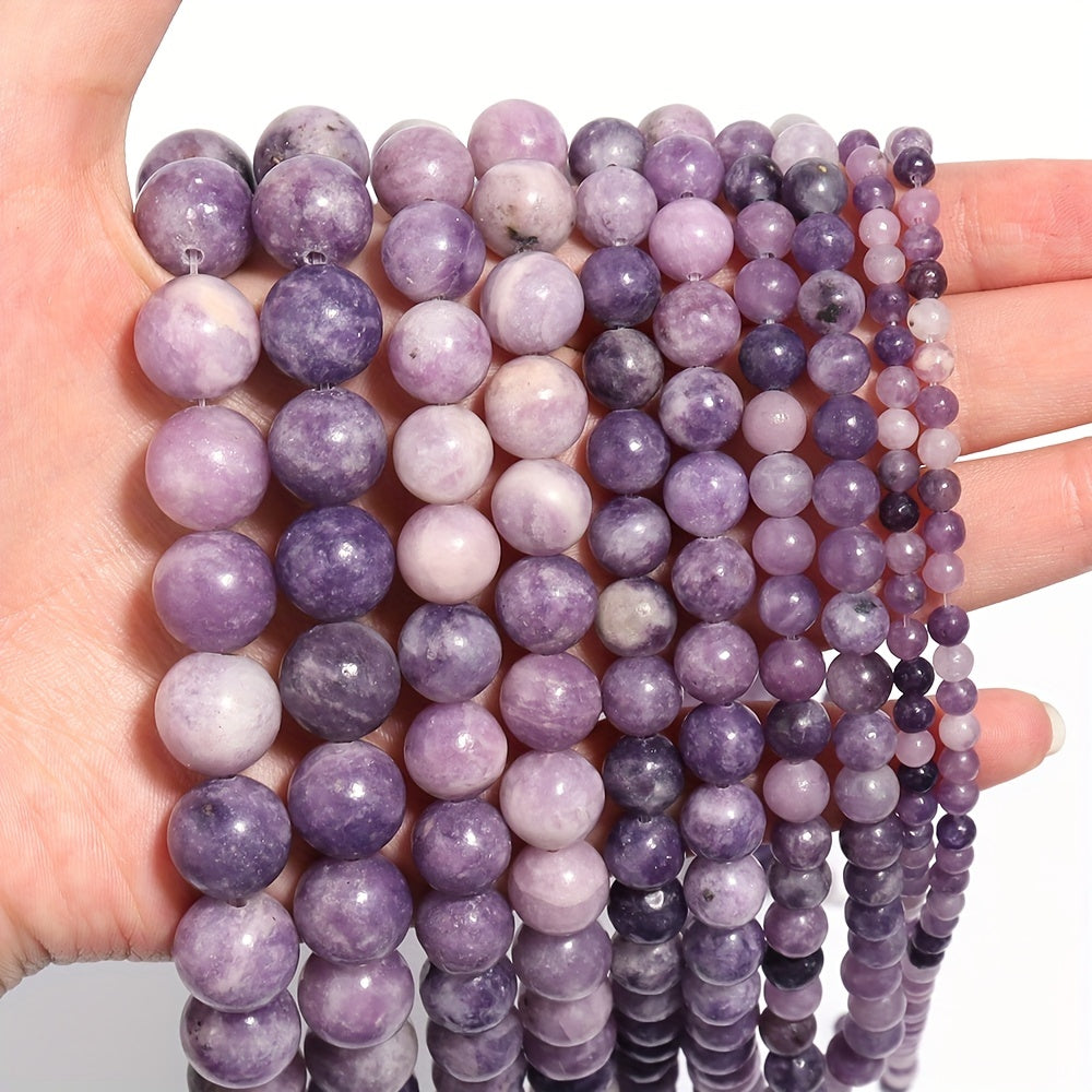 Create your own stunning jewelry with this strand of natural purple smooth round beads. Perfect for making bracelets and necklaces in various sizes.