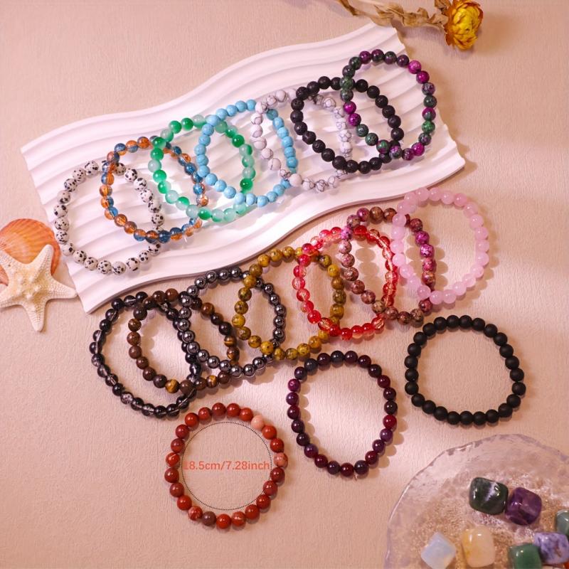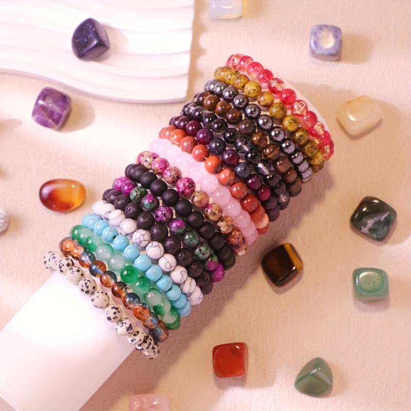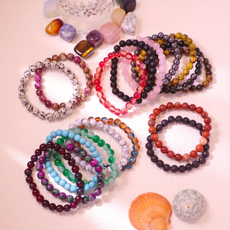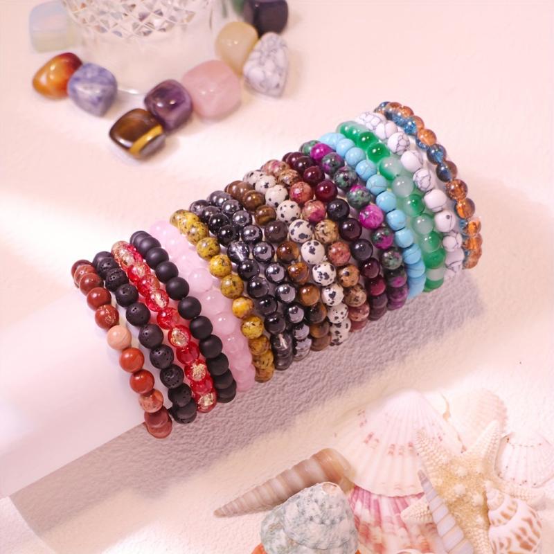 Elevate your style with these natural stone bead bracelets. Available in 17 styles and multiple sizes for both men and women. Made with rock crystal for a boho vacation look.