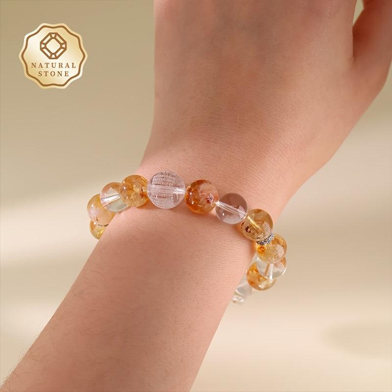 This One Piece of Natural Stone Bracelet features 10-11mm natural stones with slight cracks and wrapping. Please note that differences exist in the pattern and position due to natural variations.