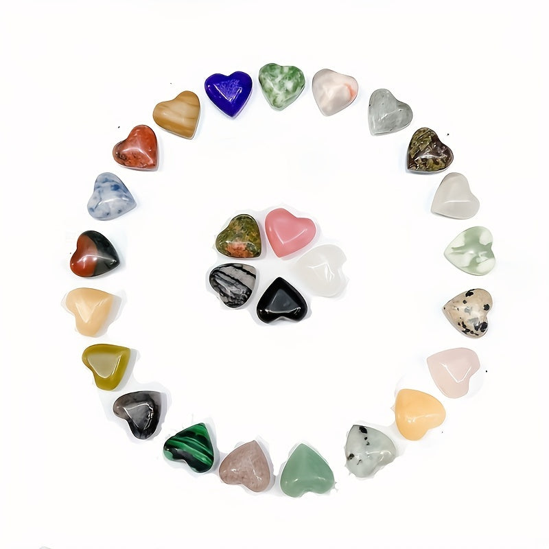 Enhance your space with these natural stone crystal heart ornaments. Perfect for meditation, yoga, and energy work.