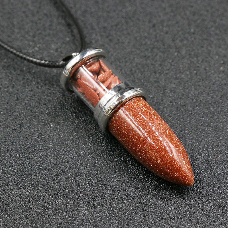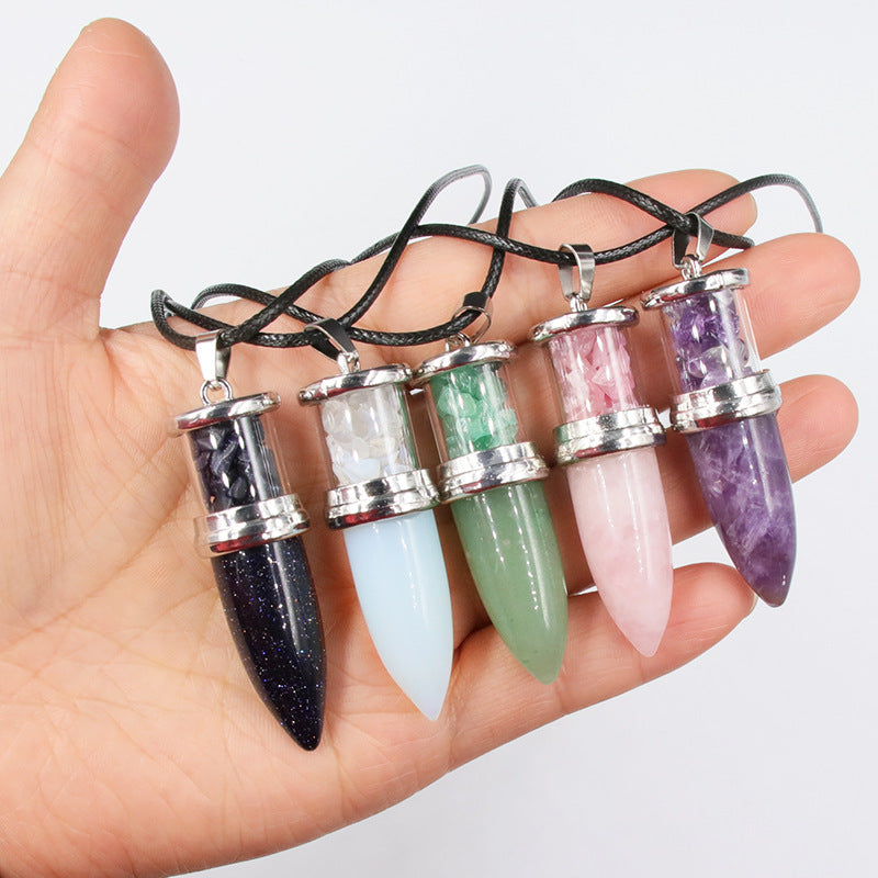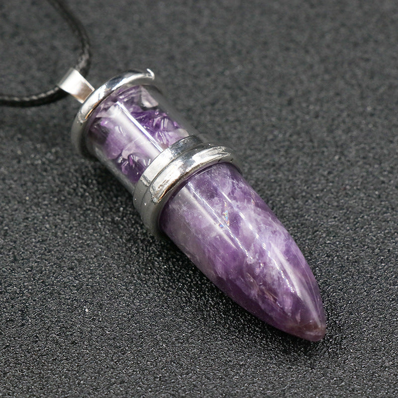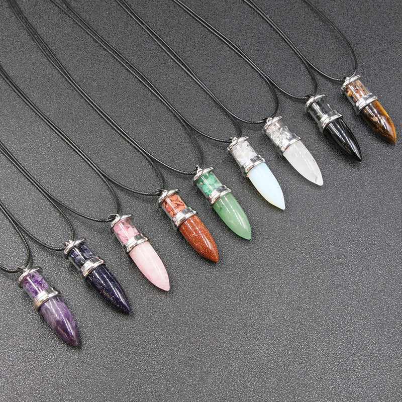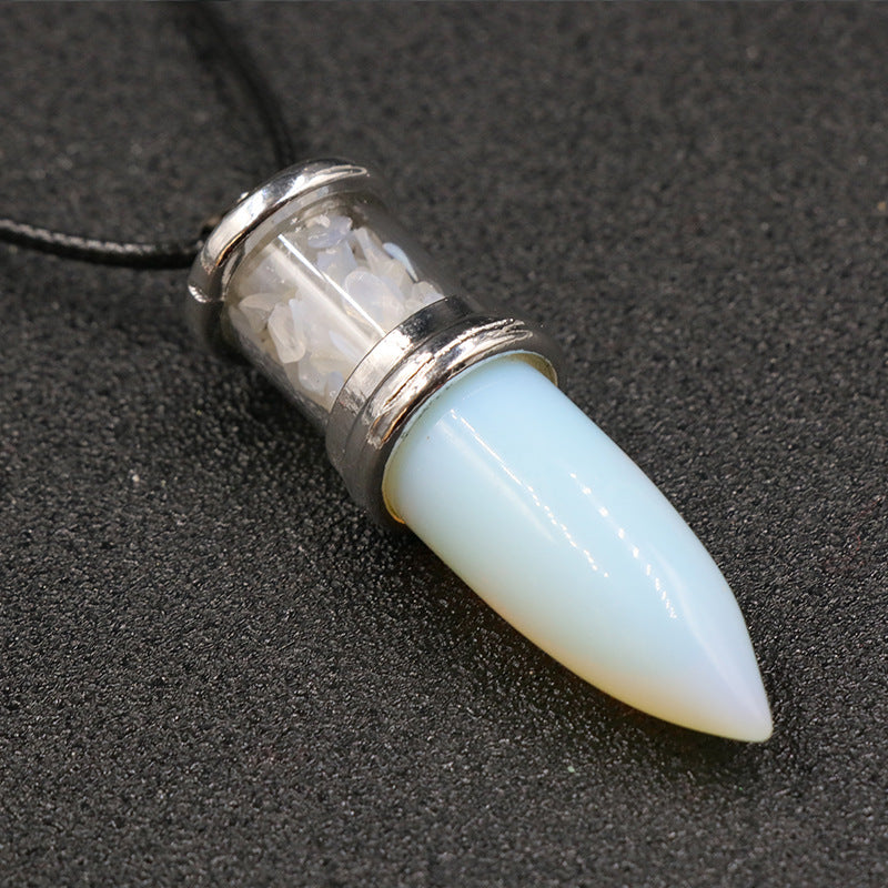 Elegant pendant necklace featuring a bullet-shaped quartz pendulum, crafted from natural stone. This beautiful necklace is a unique and stylish accessory.