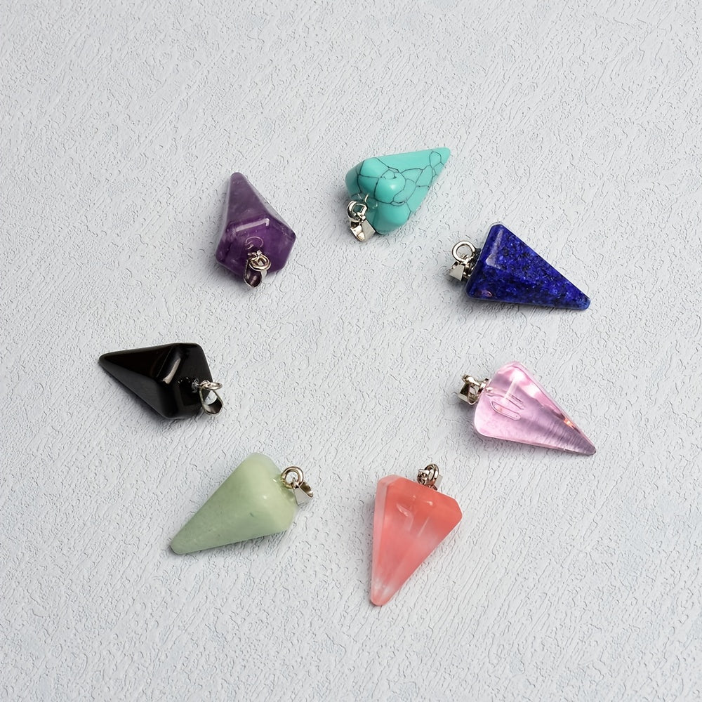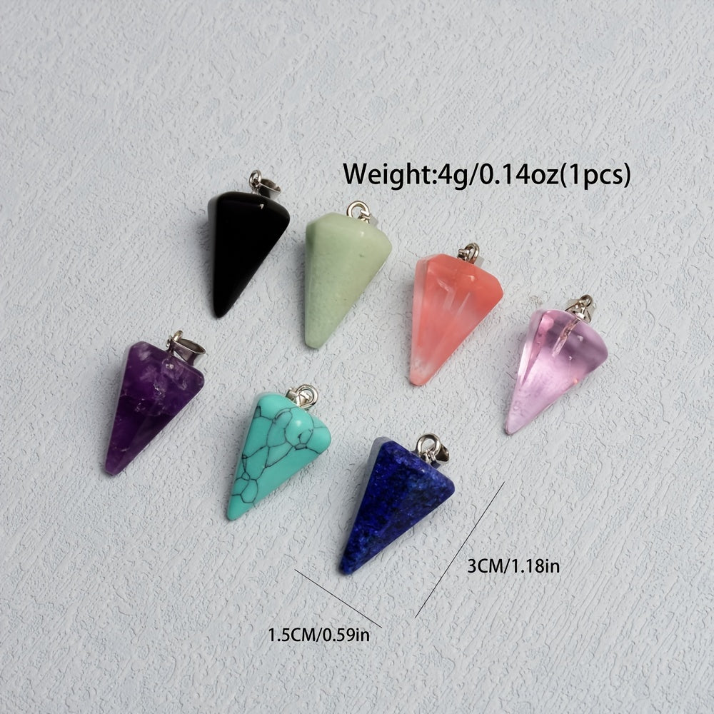 This natural stone triangle pendulum line cone pendant is perfect for creating unique necklaces and jewelry pieces. Each stone is assorted and adds a touch of natural beauty to your accessories.