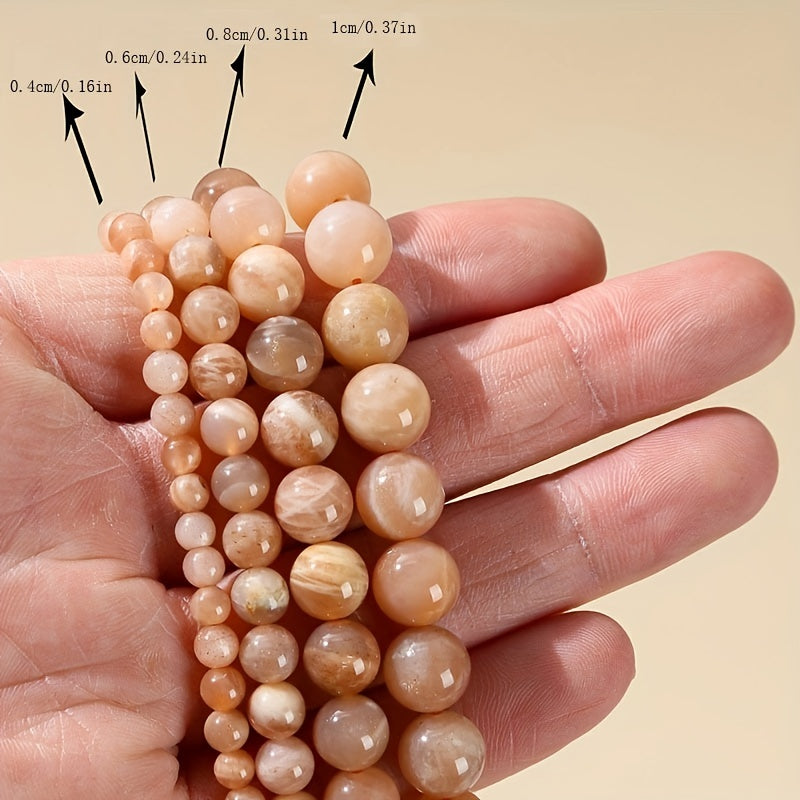 Create beautiful bracelets, earrings, necklaces, and keychains with these round natural sunstone beads. Available in 4mm, 6mm, and 8mm sizes.