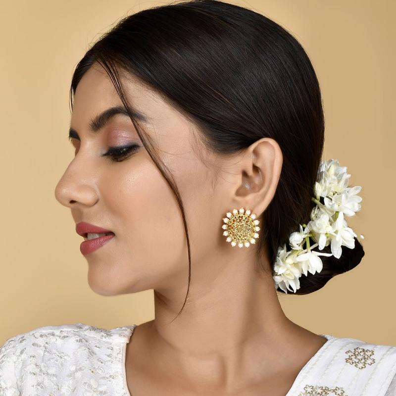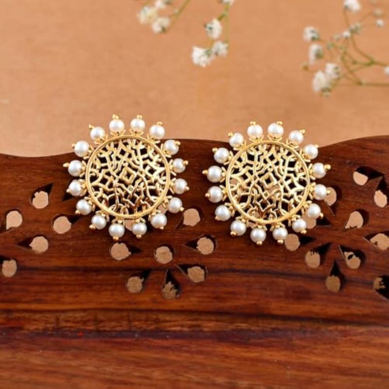 Make a bold statement with these stunning oversized stud earrings featuring intricate Gul design.
