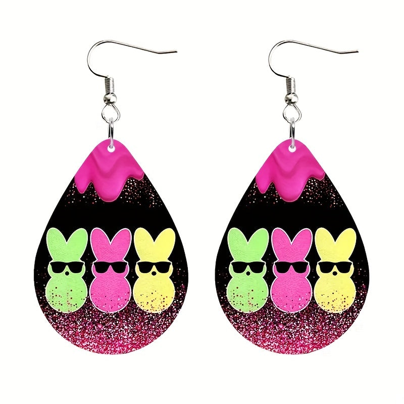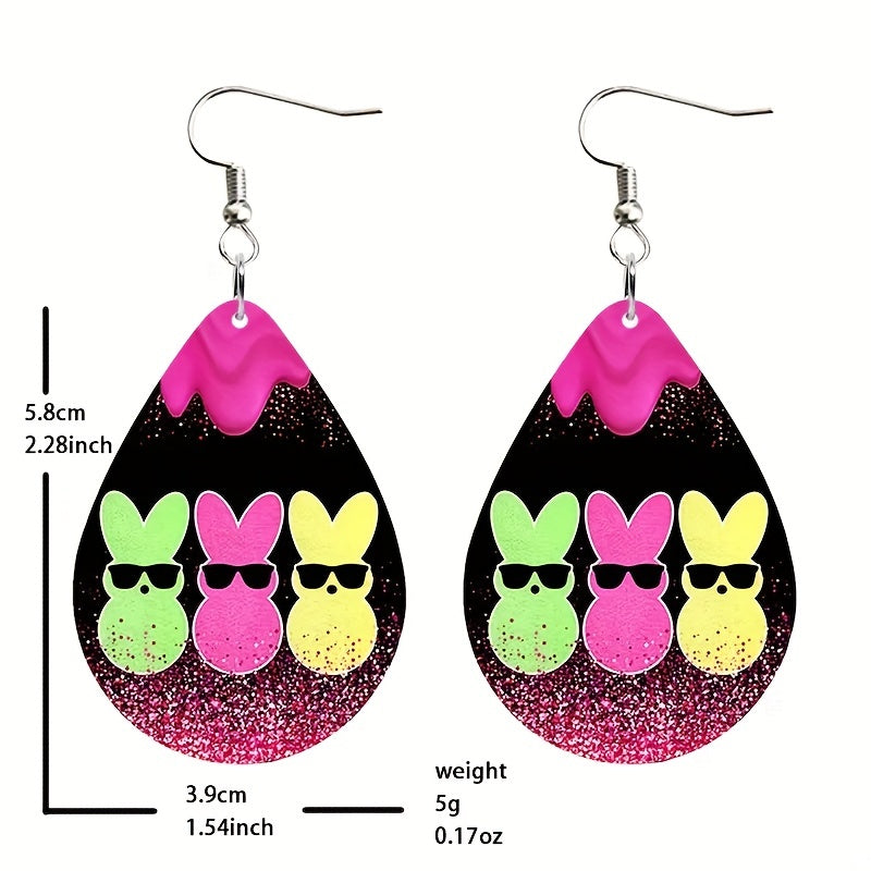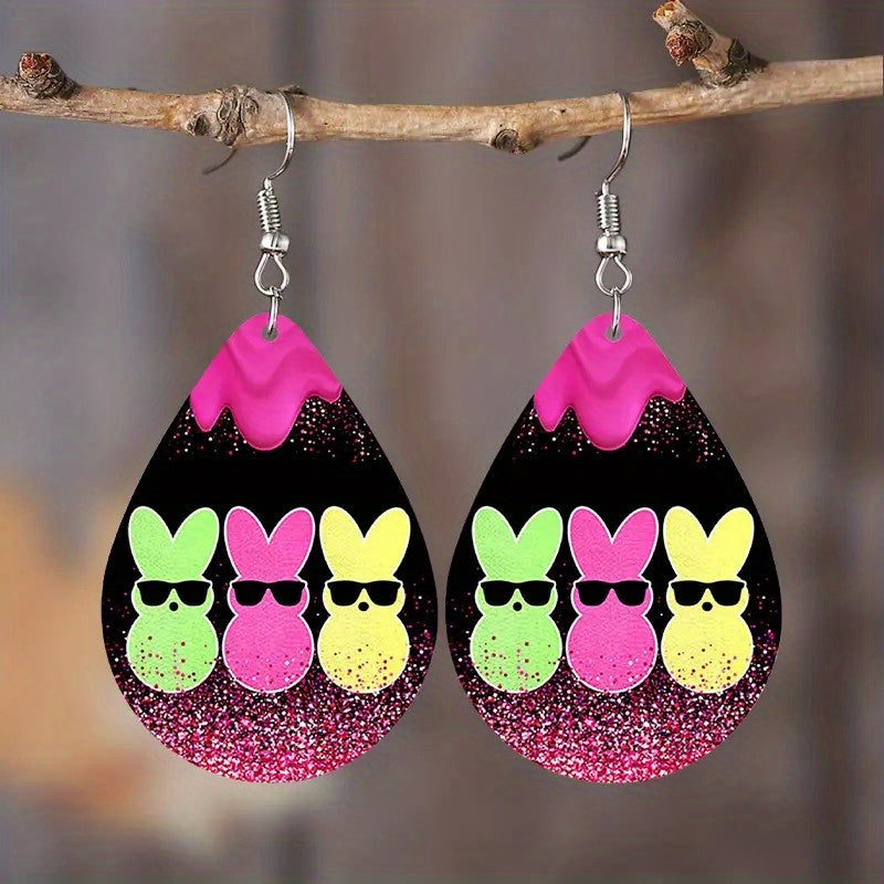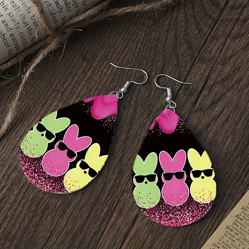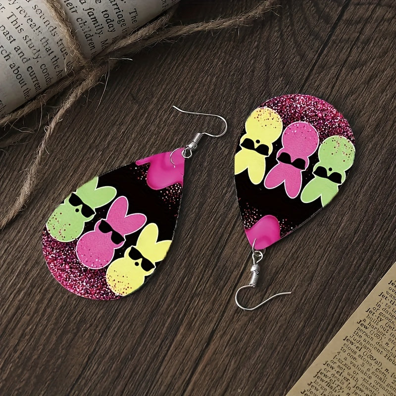 Get ready to stand out with these stylish Nightclub Rabbit Easter Pattern Leather Earrings. Perfect for parties and special occasions, these teardrop dangle earrings are designed for men.
