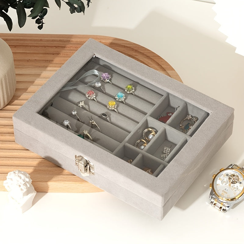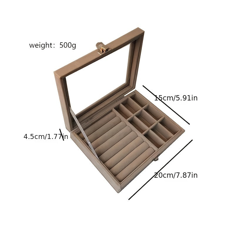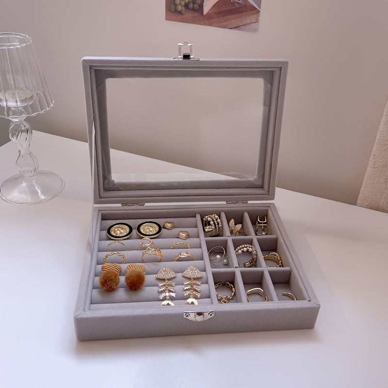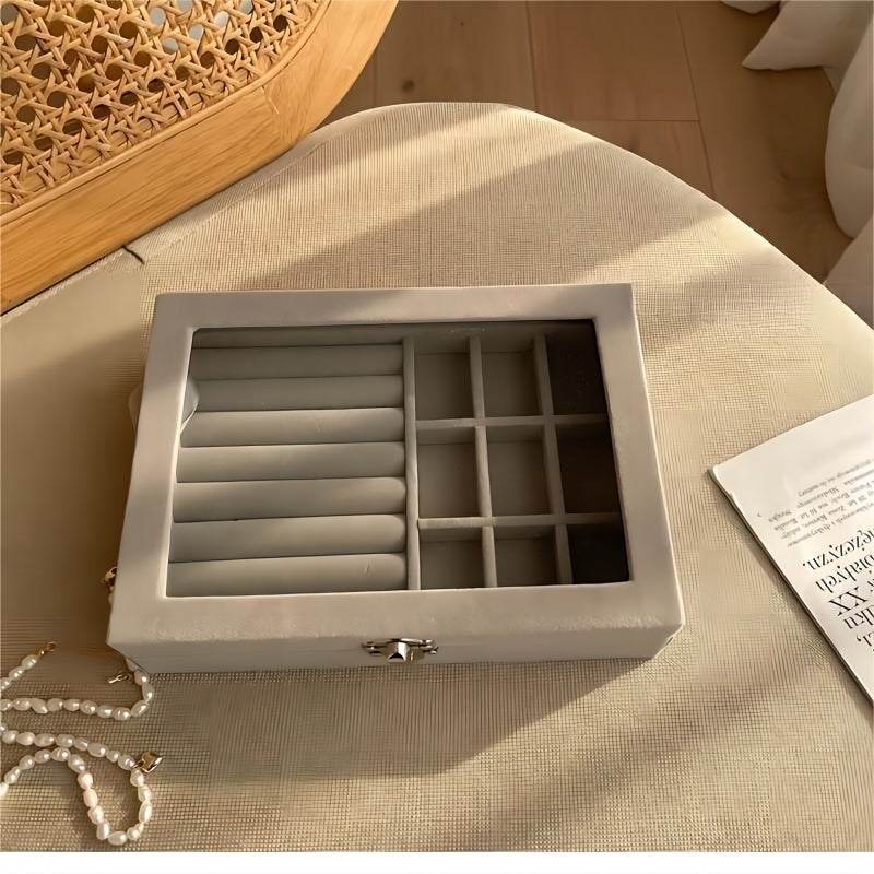 Keep your jewelry organized and easily accessible with this elegant Nine Grid Jewelry Storage Box. It features a clear window for easy viewing and keeps your jewelry safe and protected.