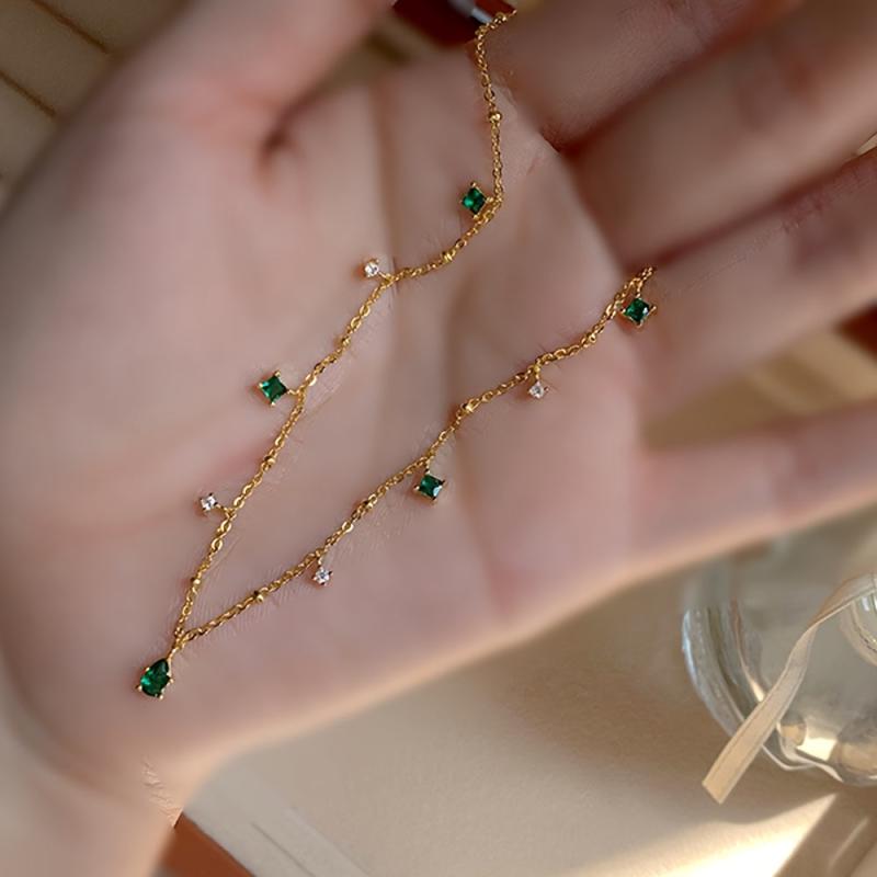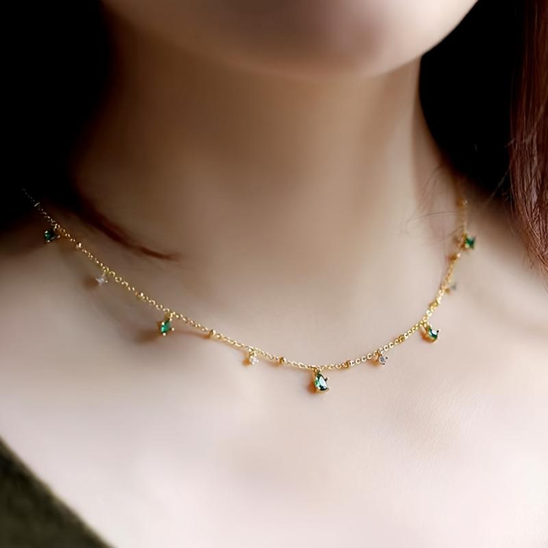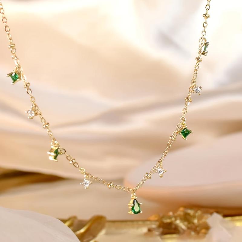 Elegant necklace featuring a KC gold-plated green gemstone pendant with delicate chain. Perfect for daily wear.