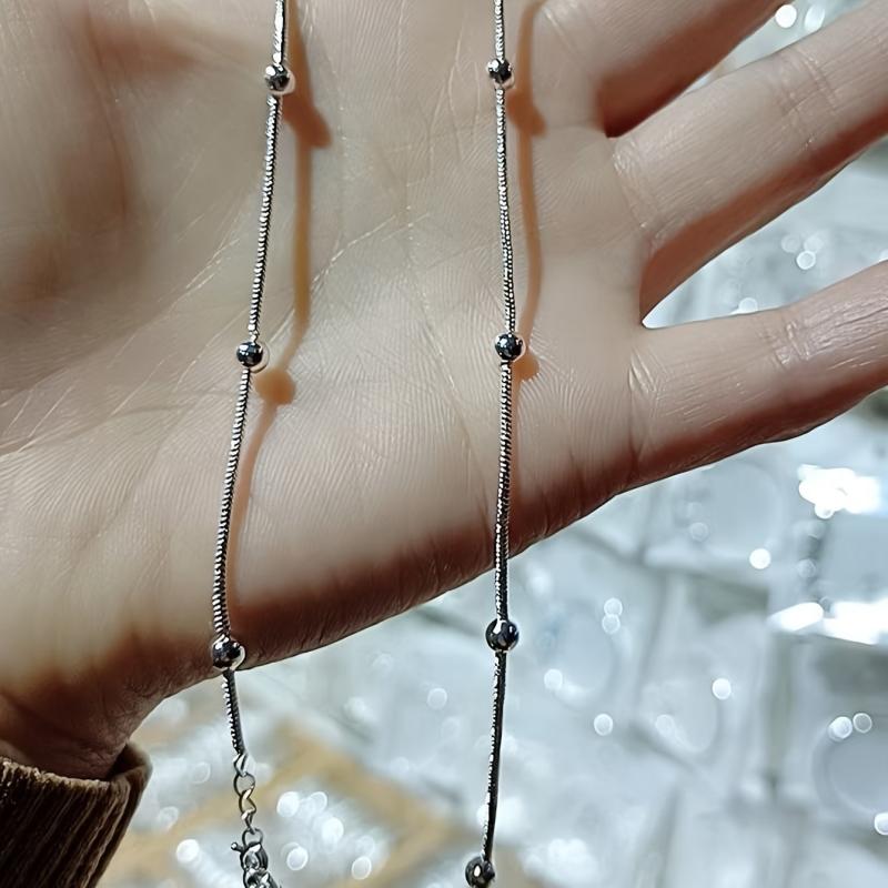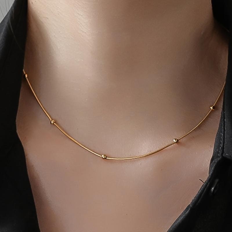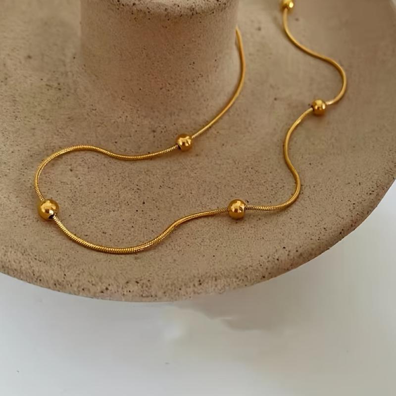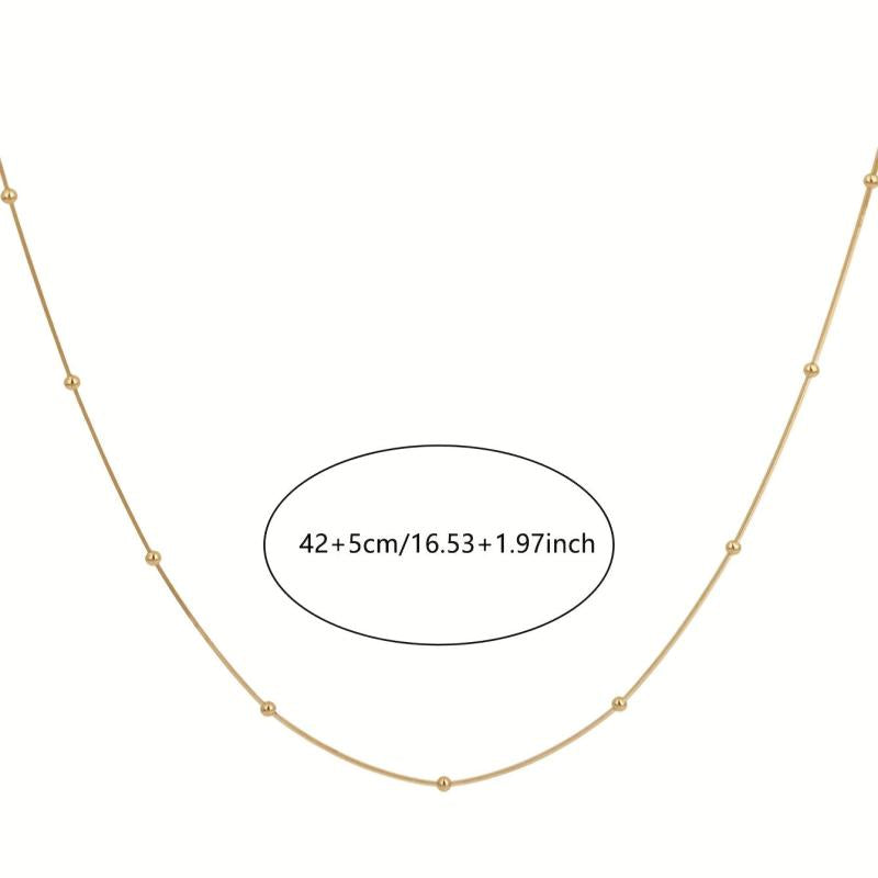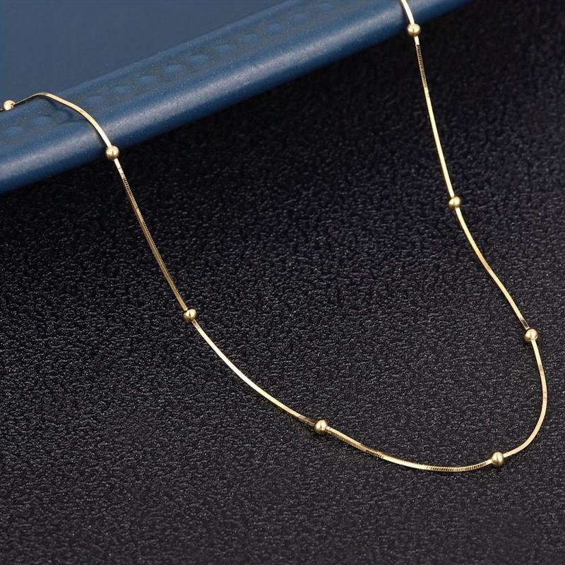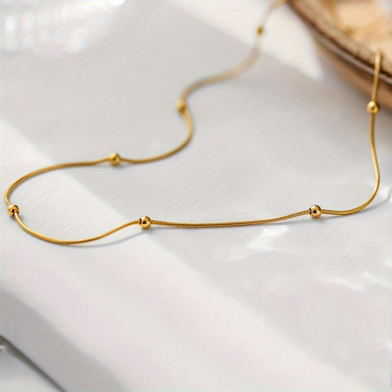 Elevate your style with this classic snake chain necklace. Made of stainless steel in a delicate golden tone, this everyday accessory is perfect for any outfit. The beaded chain adds a touch of sophistication and elegance.