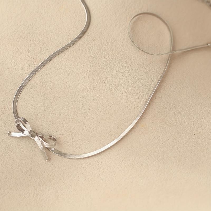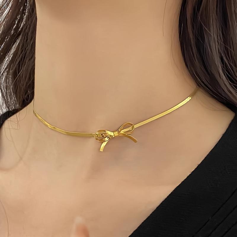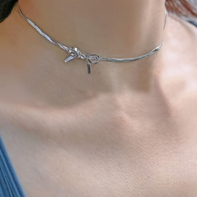 Elevate your style with this stainless steel choker necklace featuring a bow knot pendant. It's perfect for adding a touch of sexy and vacation-ready flair to your daily and party looks.