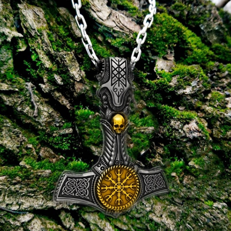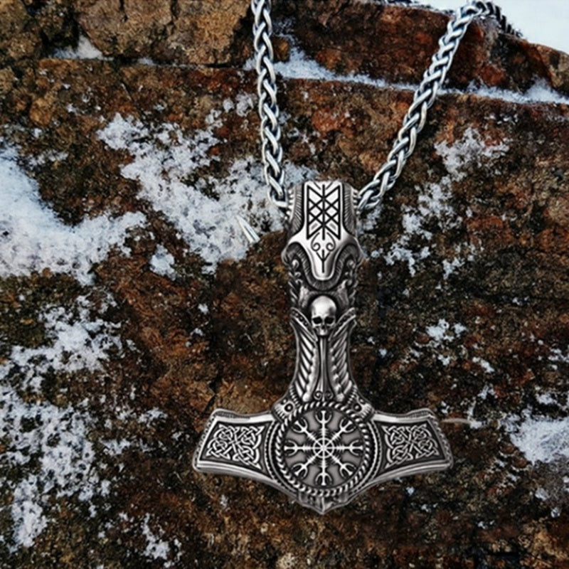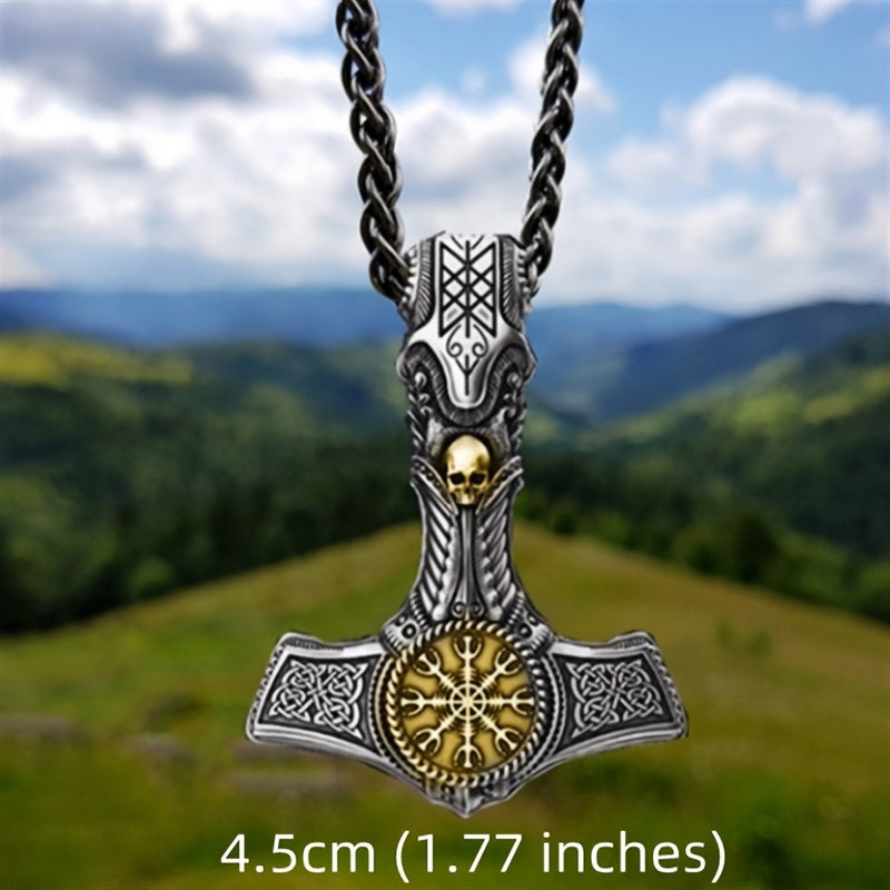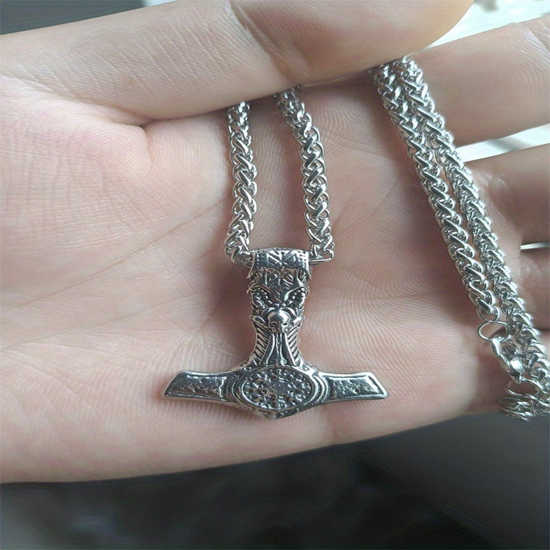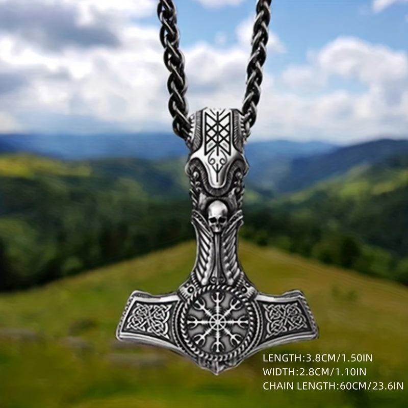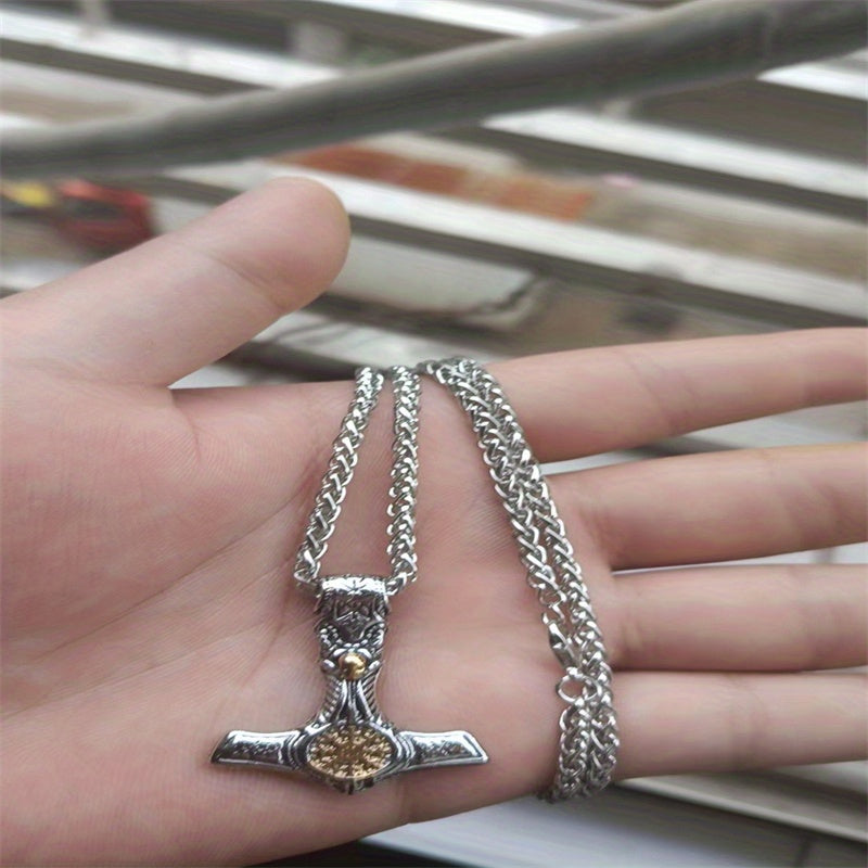 This pendant necklace features a Nordic Men Viking Tuten Hammer design made of zinc alloy. It is a unique and stylish piece of punk jewelry for men.