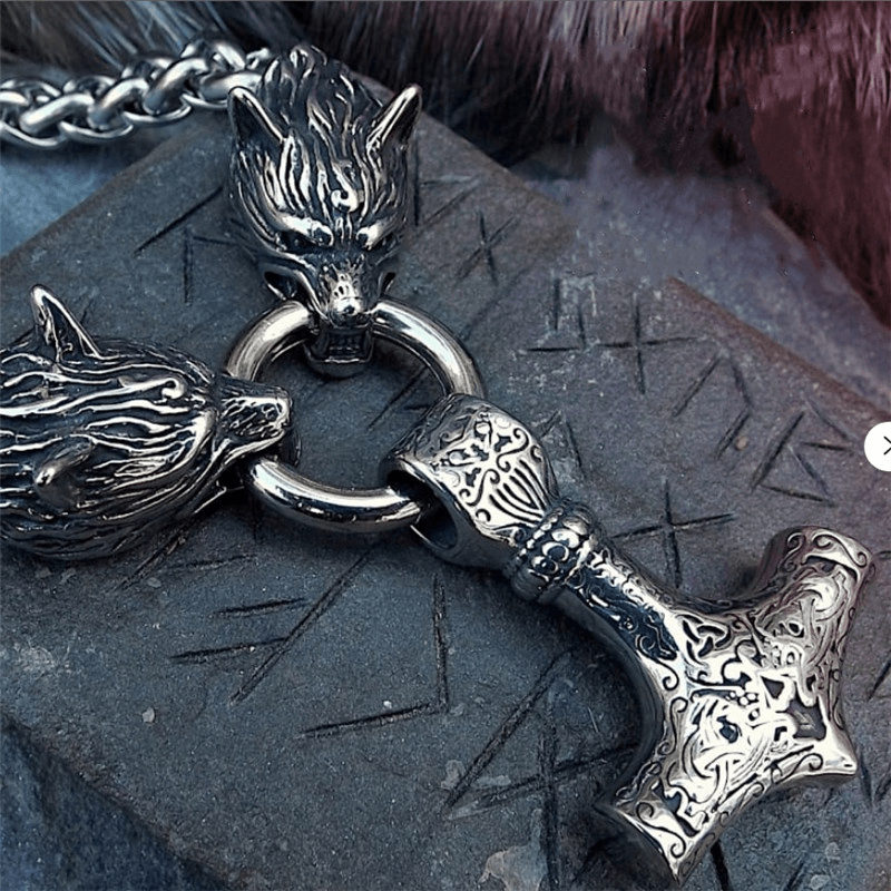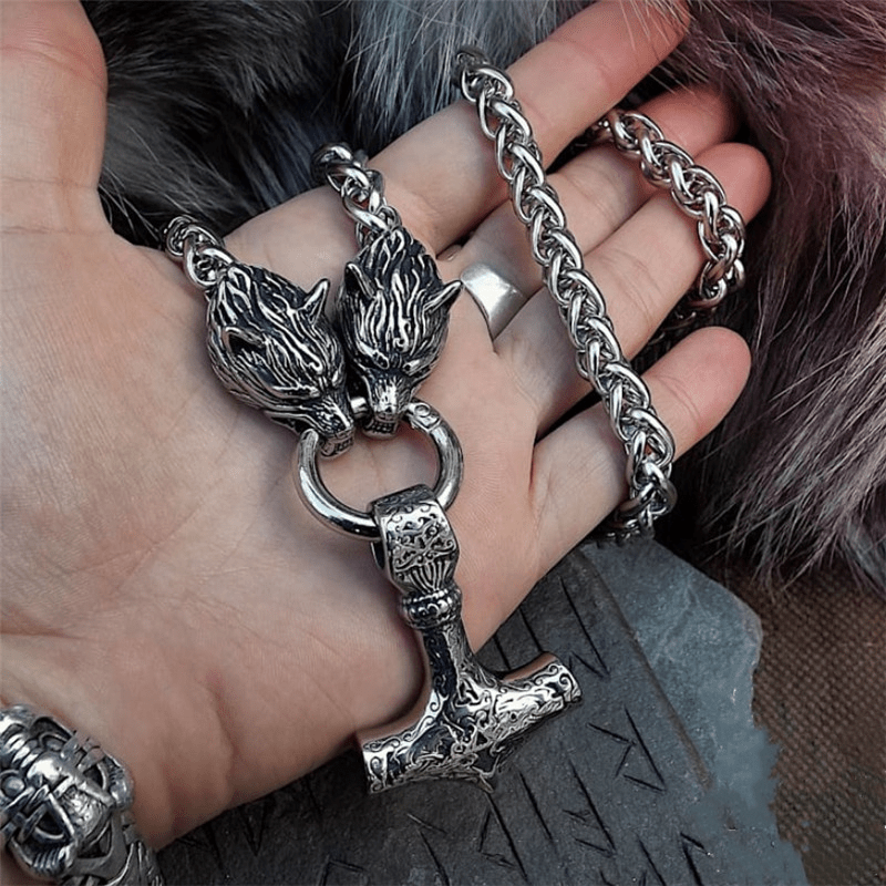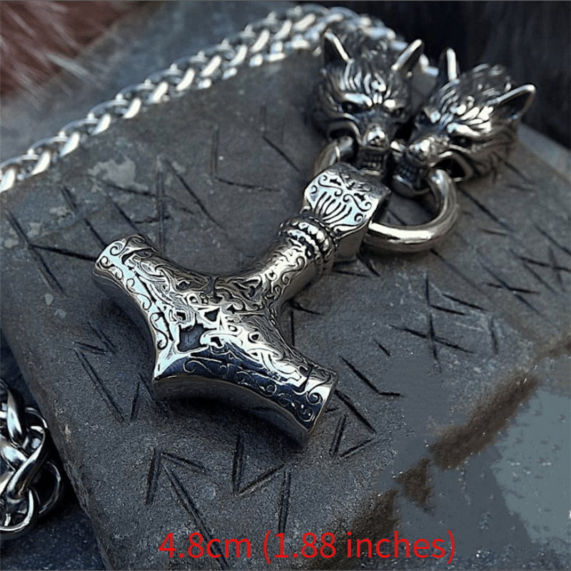 This vintage necklace features a Viking wolf head hammer pendant, making it a perfect amulet jewelry piece for men. Ideal for hip hop style, it also makes a great gift for Christmas, holidays, or party decorations.