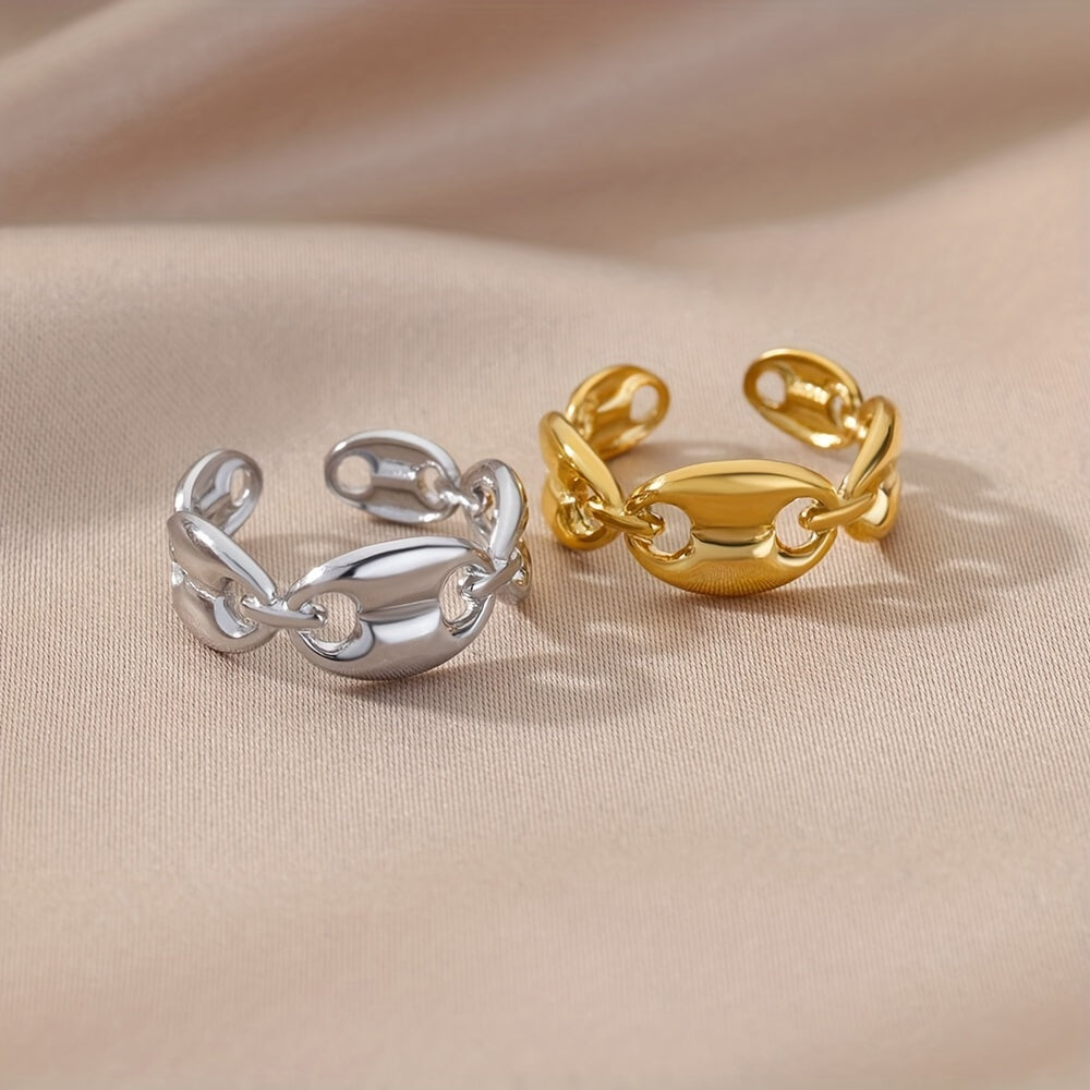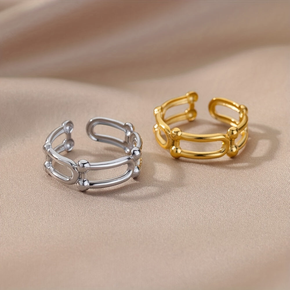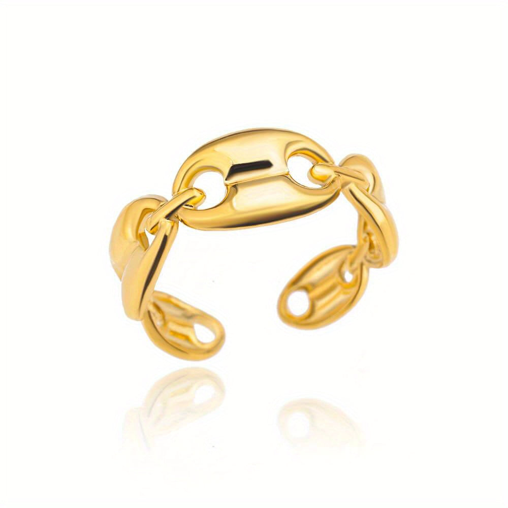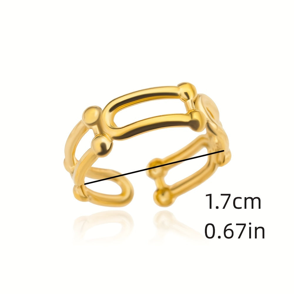 Elegant and versatile golden cuff ring made of high-quality 18k plated stainless steel. Perfect for daily work and study scenes as well as casual dating.