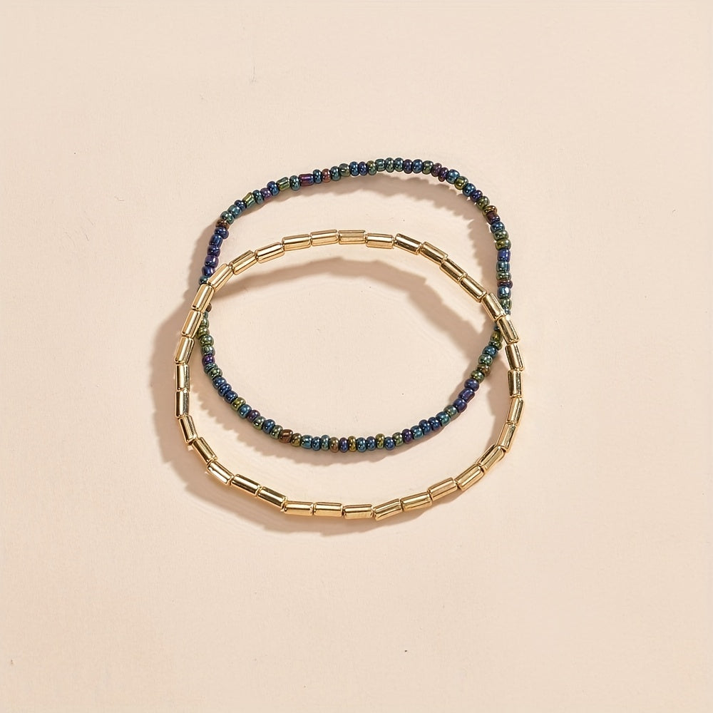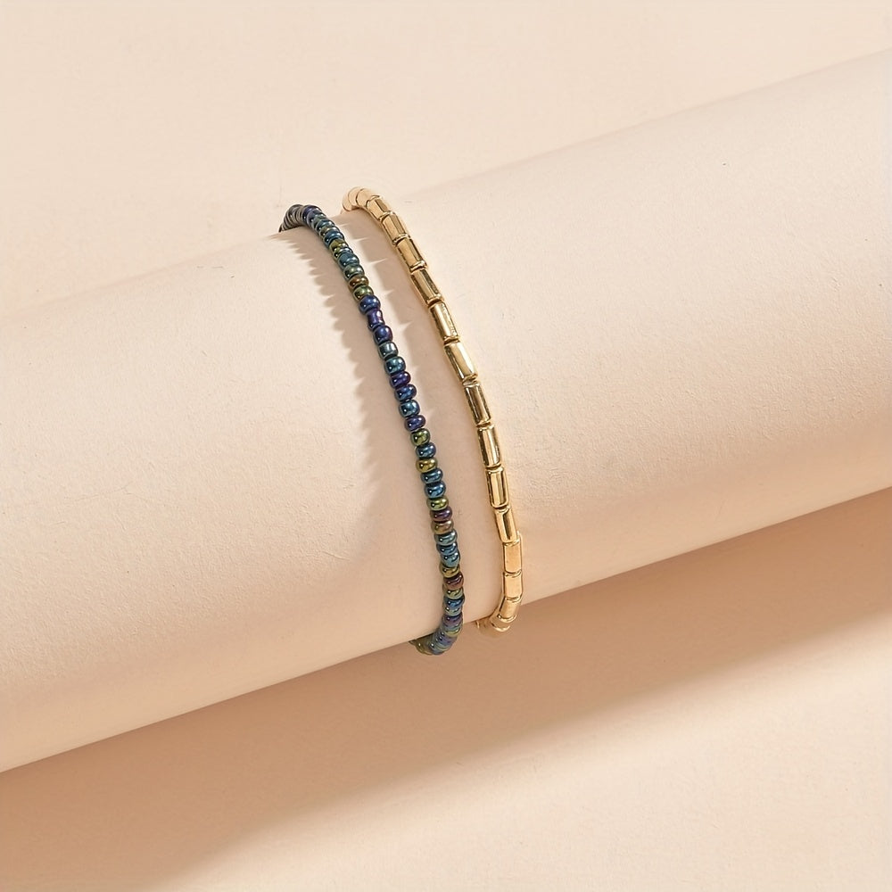Vintage style stackable ankle bracelet set with a beachy vibe. Perfect for summer wear.