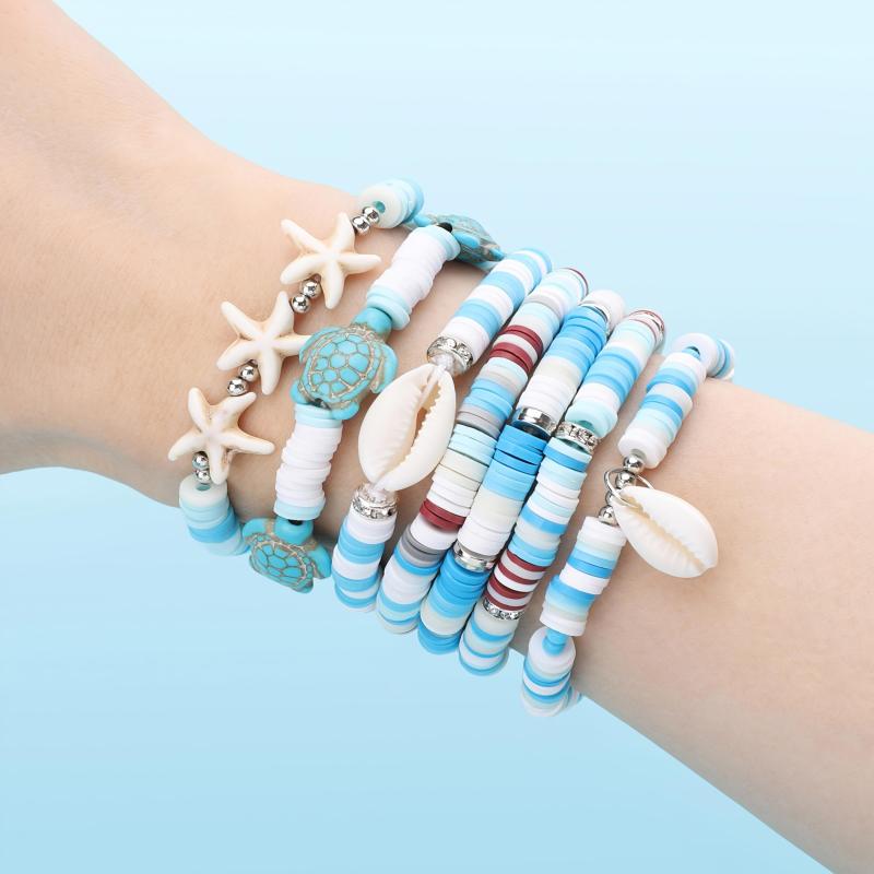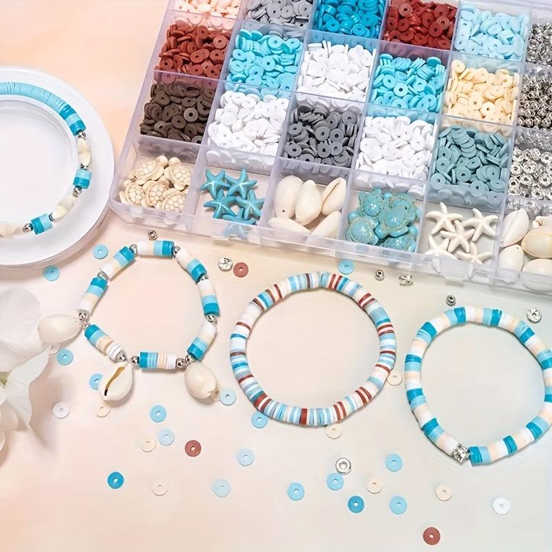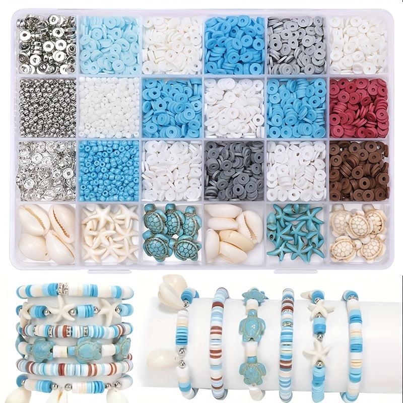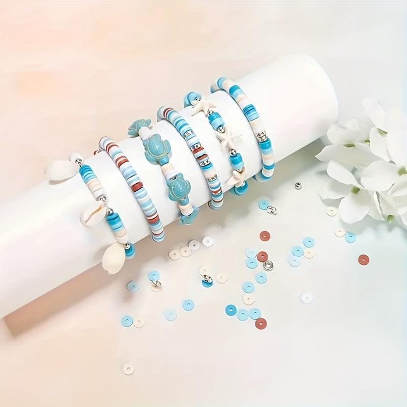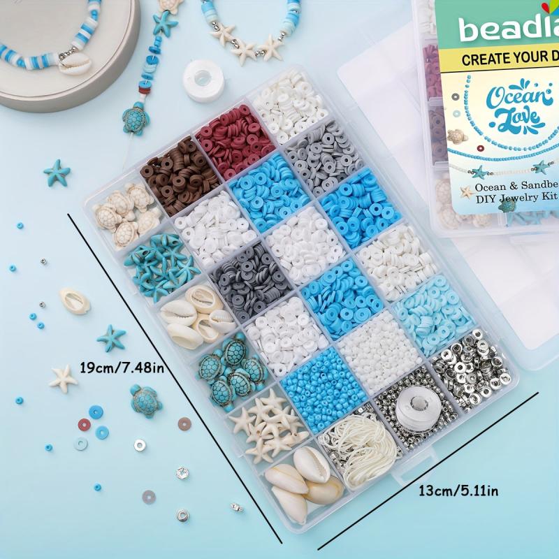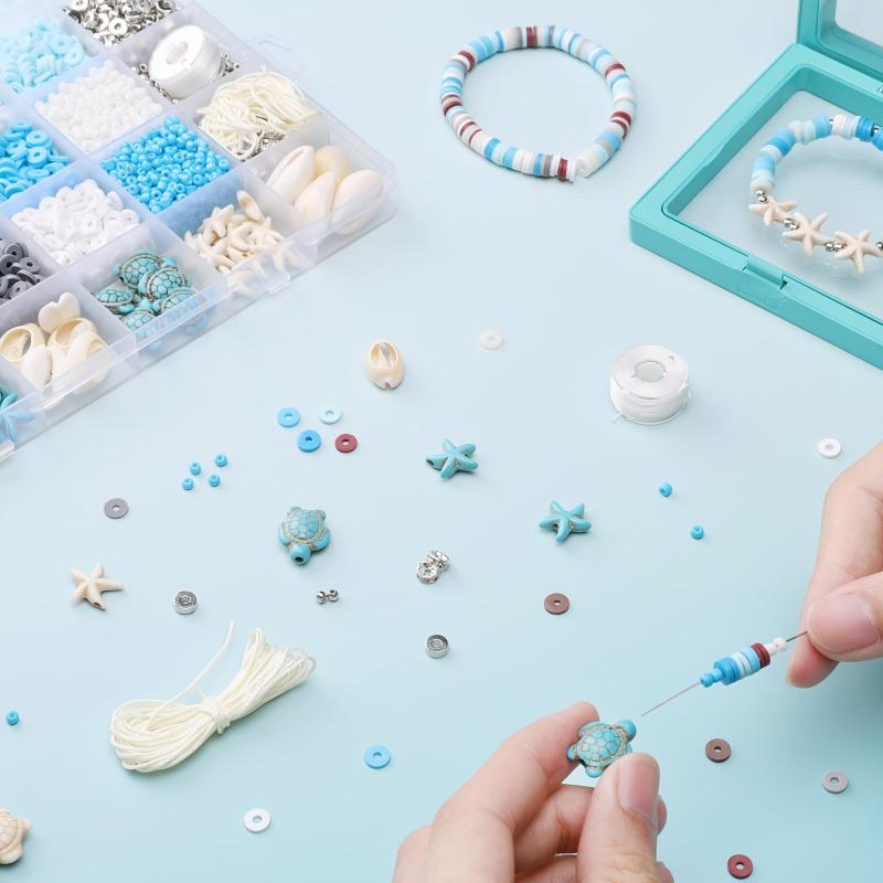 Create beautiful DIY friendship bracelets with this kit that includes natural stones, polymer clay beads, and various ocean-themed charms.