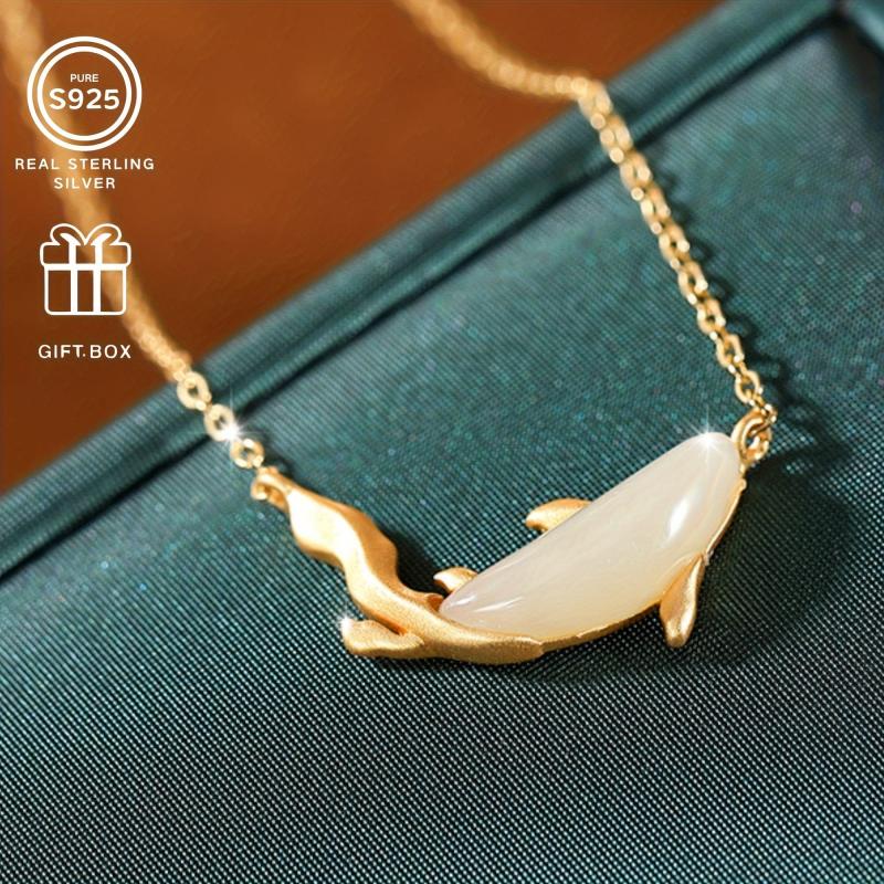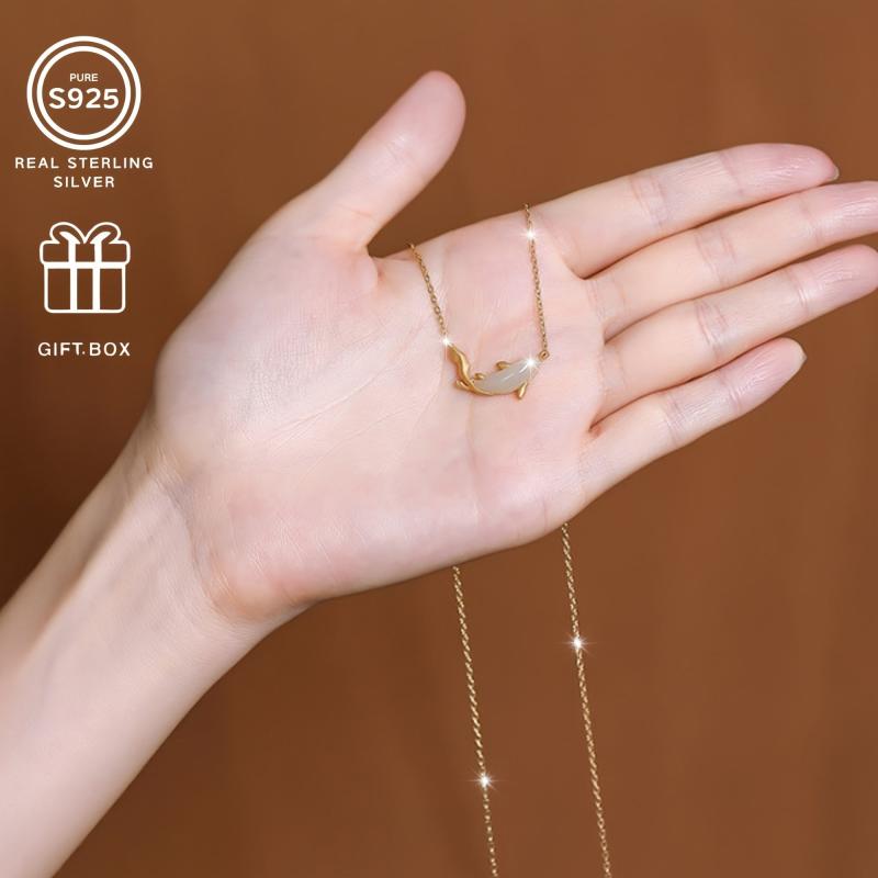 Elevate your style with this stunning ODEK pendant necklace featuring a dolphin design with natural stone inlay. Perfect for daily wear or special occasions, this nautical-themed accessory will add a touch of elegance to any outfit.