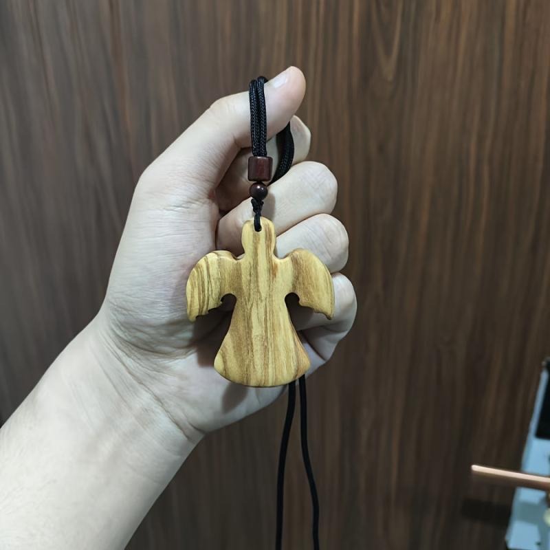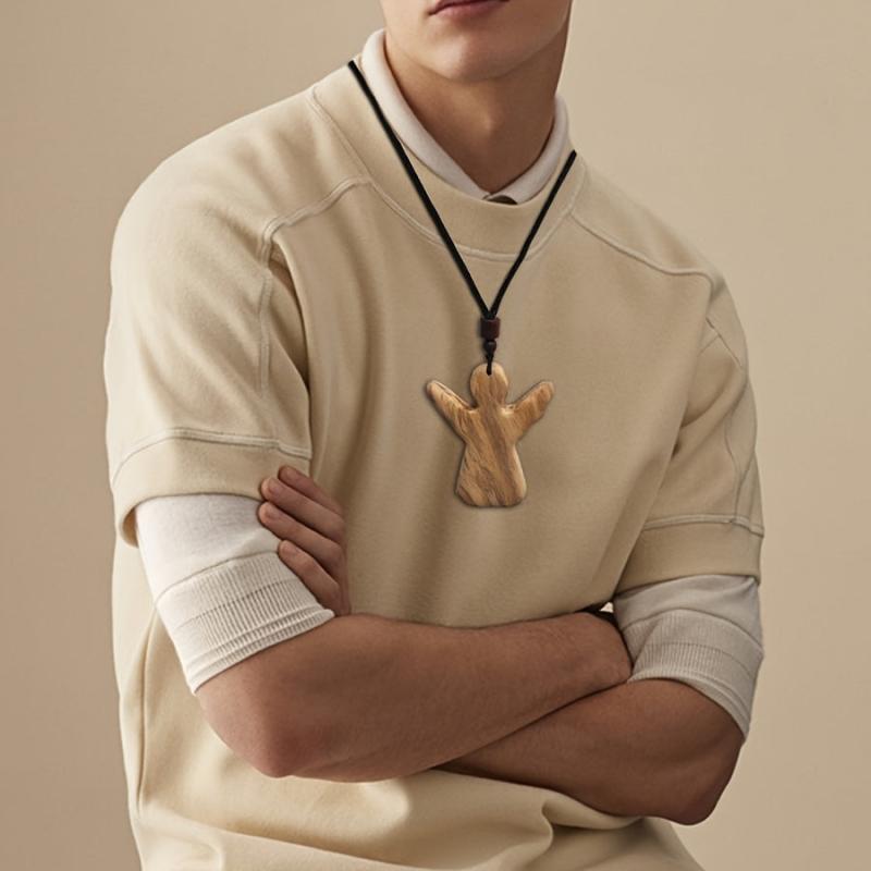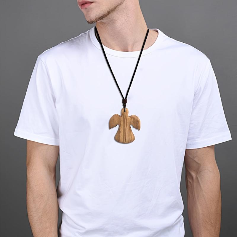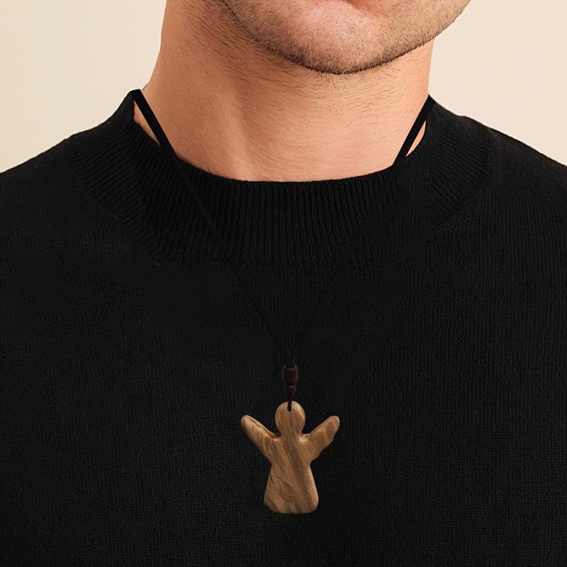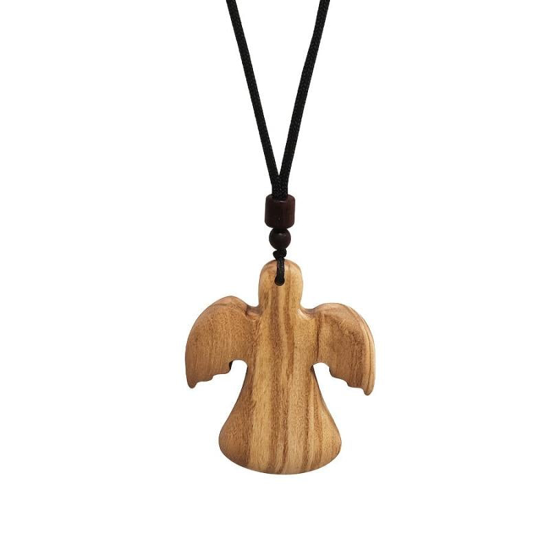 This olive wood winged figure necklace is a perfect gift for friends and family. Ideal for mother's day, this necklace is suitable for men and women.