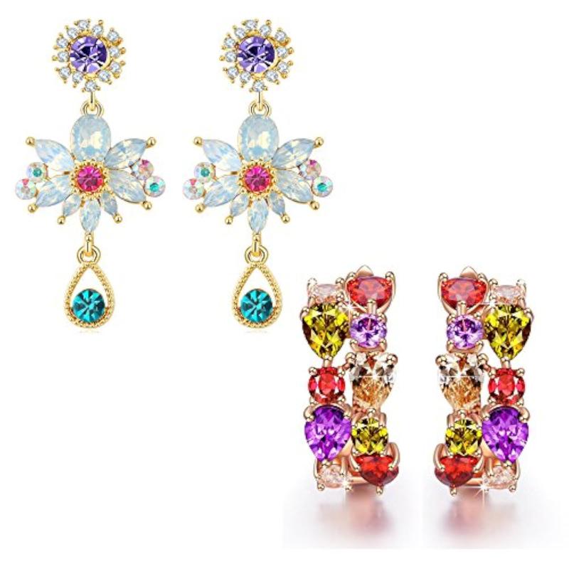 Elegant pair of drop earrings featuring lustrous opal, AAA cubic zirconia, and enchanting crystal elements. Perfect for adding a touch of glamour to any outfit.