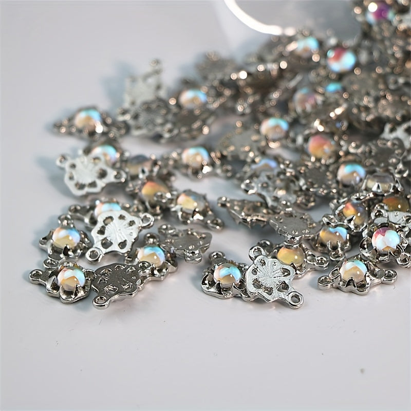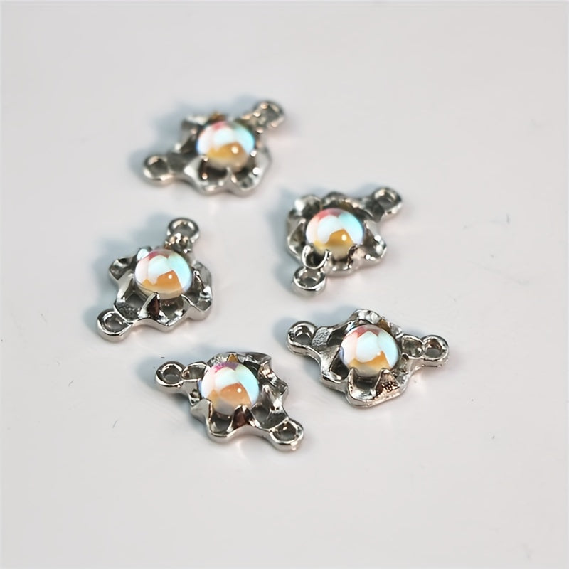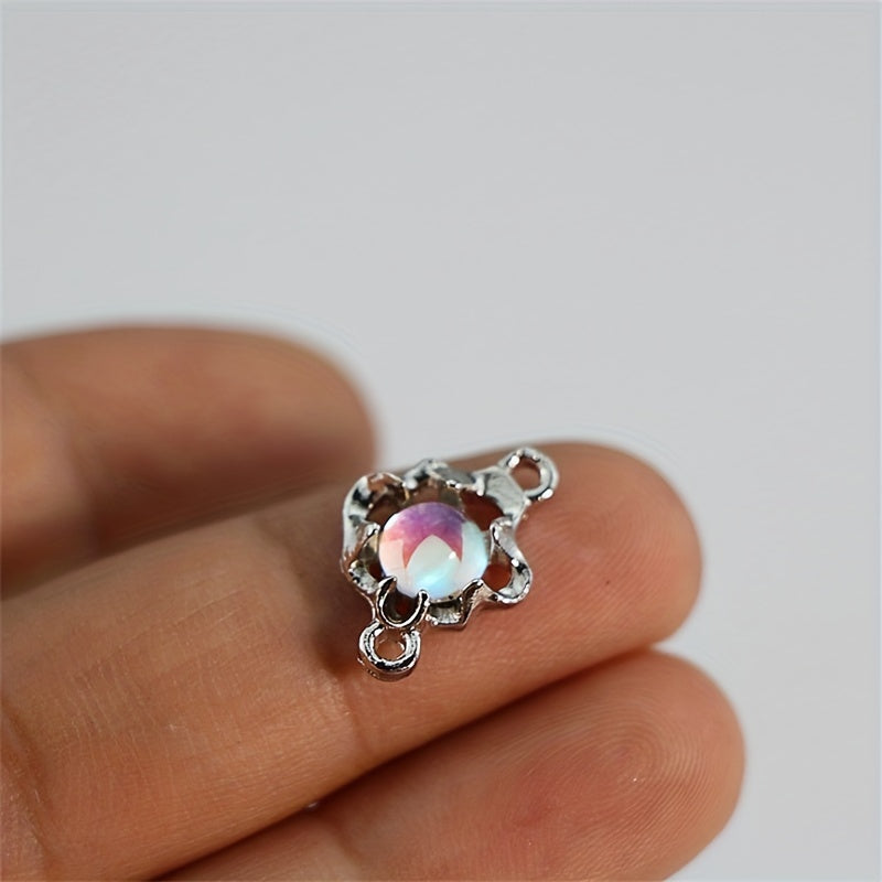Enhance your jewelry-making projects with these opal decor silvery alloy double hangings connectors. Perfect for earrings, pendants, bracelets, and necklaces.