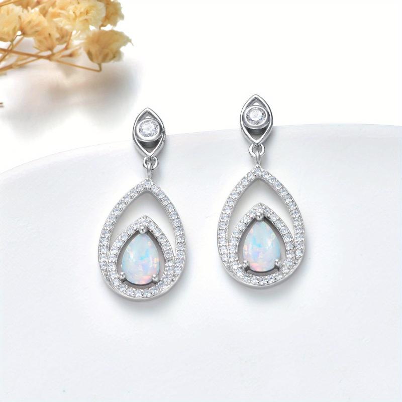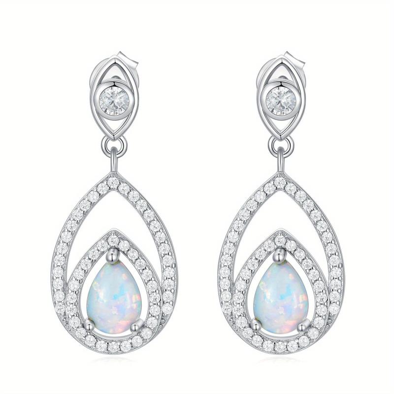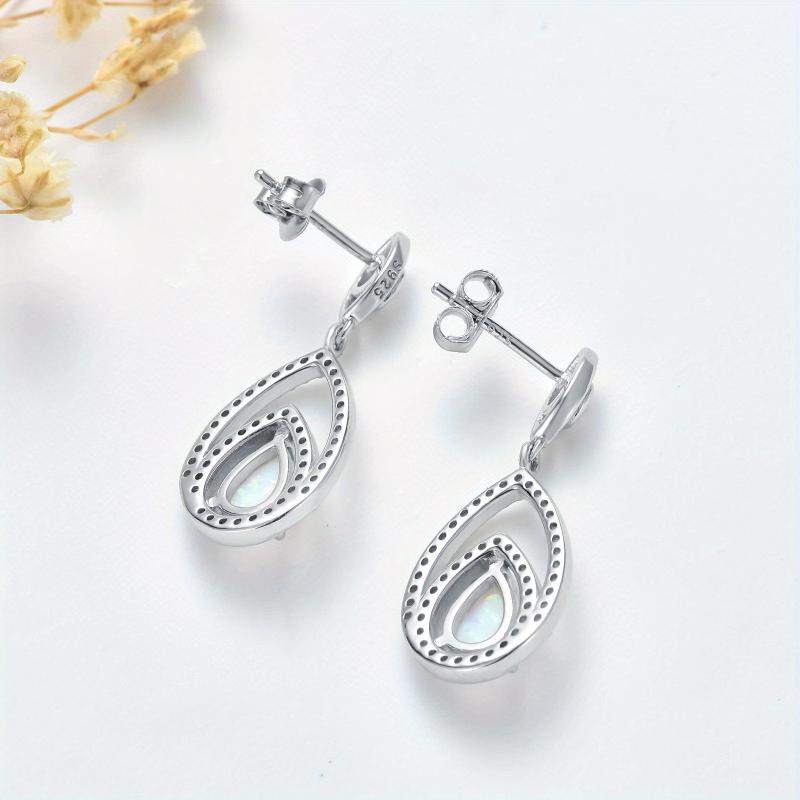 These stunning leverback earrings are made of 925 sterling silver with synthetic opal drops. A perfect gift for women who appreciate elegant jewelry.
