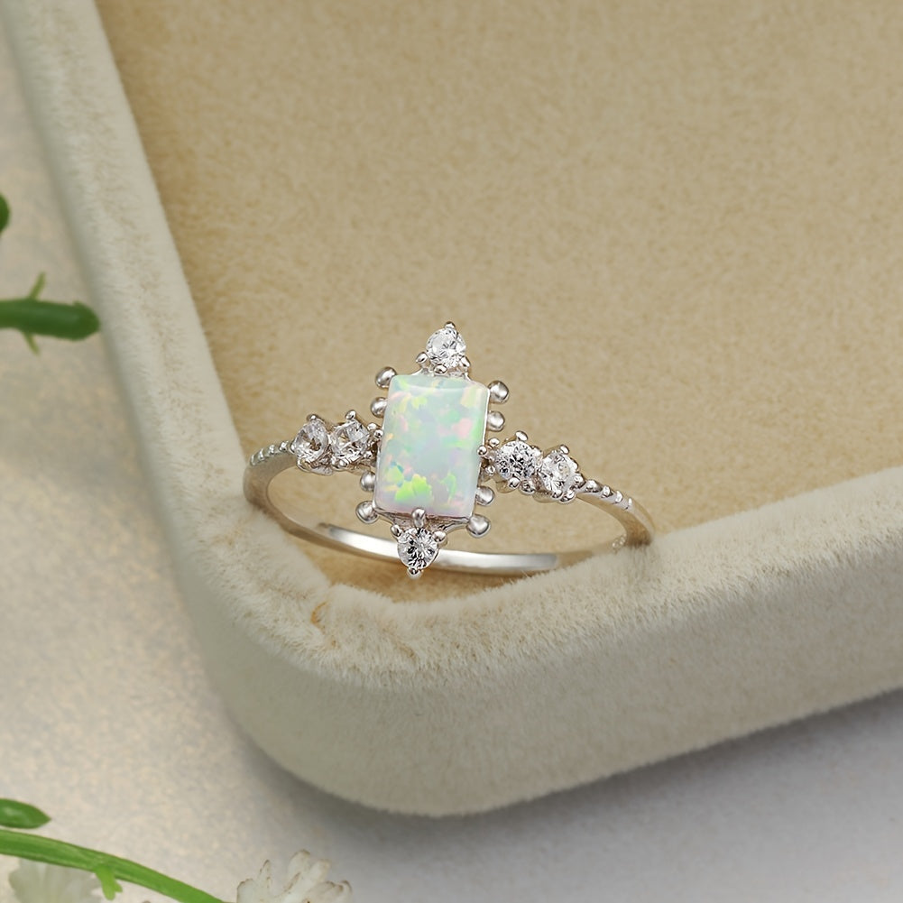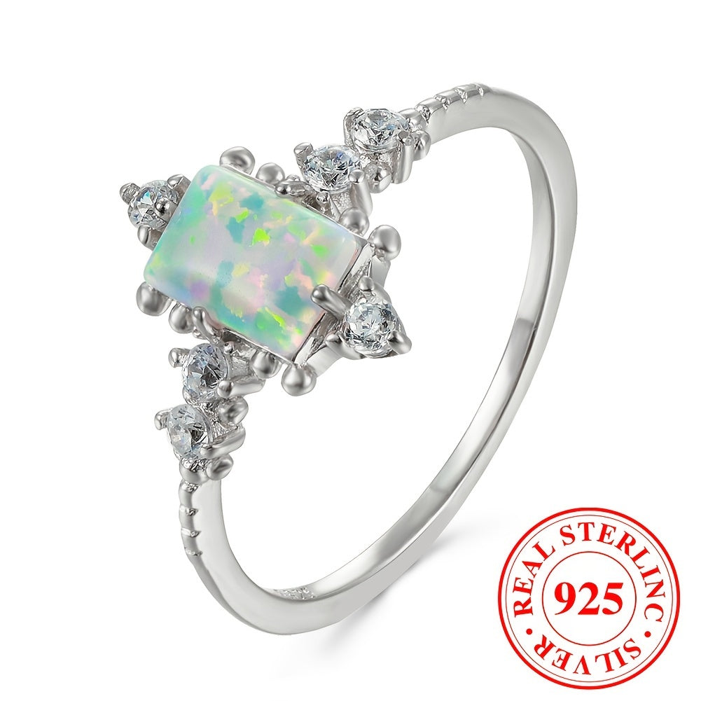 This stunning Opal eternity ring features 925 sterling silver, perfect for weddings, anniversaries, or as a promise or engagement ring.